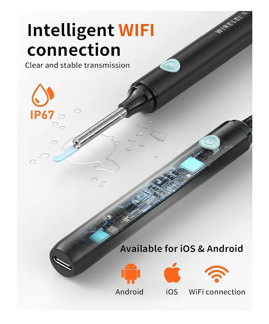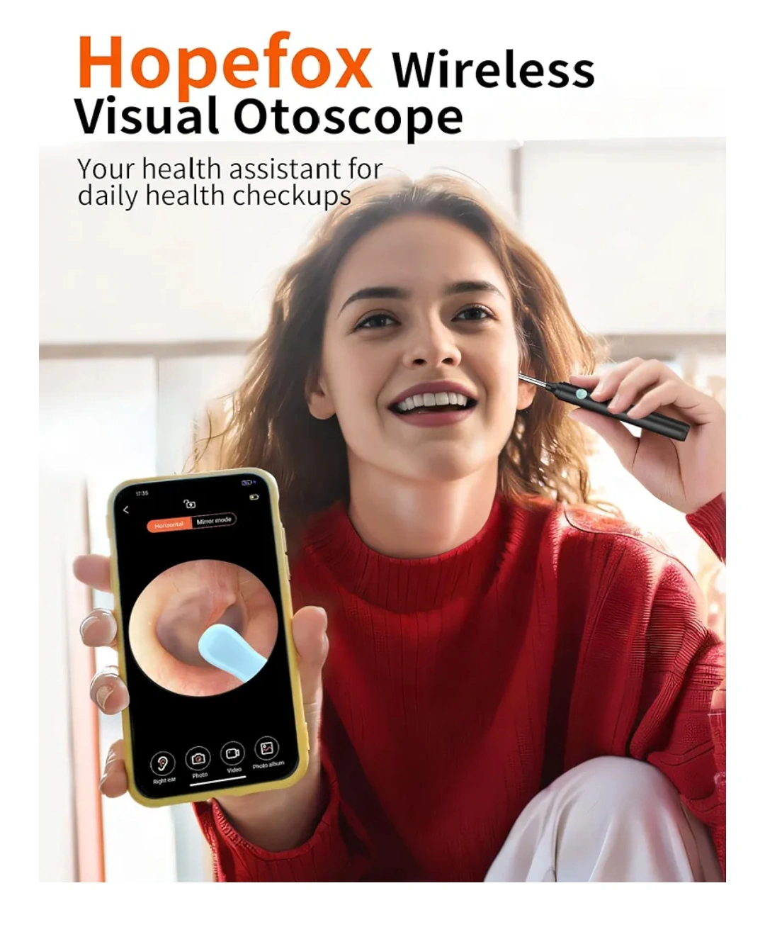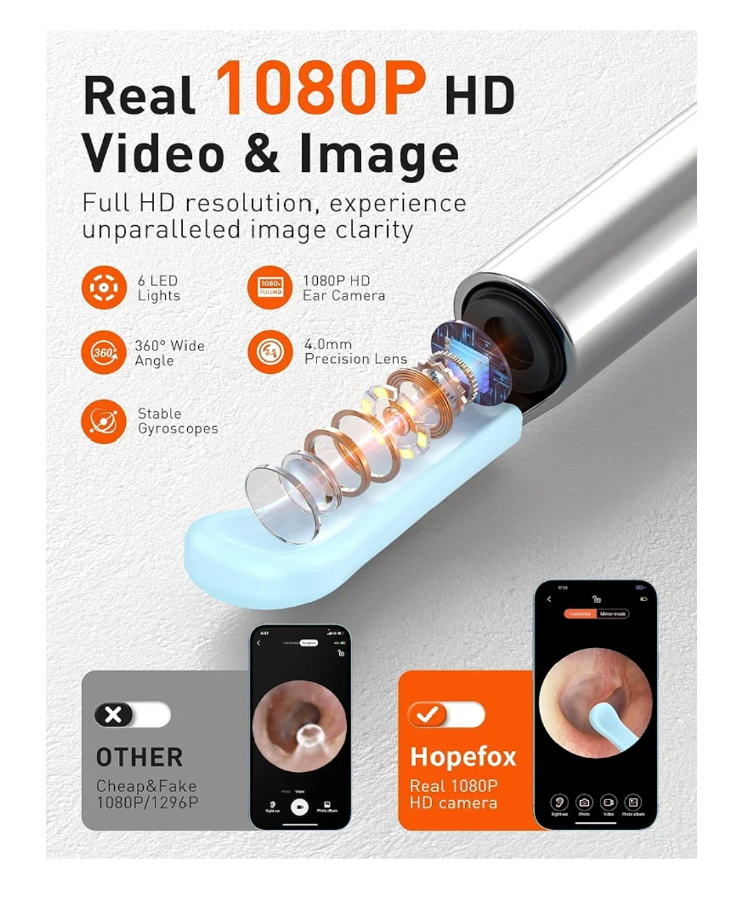 Hopefox Ear Wax Removal Kit, Ear Cleaner Camera, 5MP Ear Camera with 6 LED Lights, WiFi Ear Wax Remover Otoscope with Ear Pick Set for iPhone, iPad & Android Smart Phones.