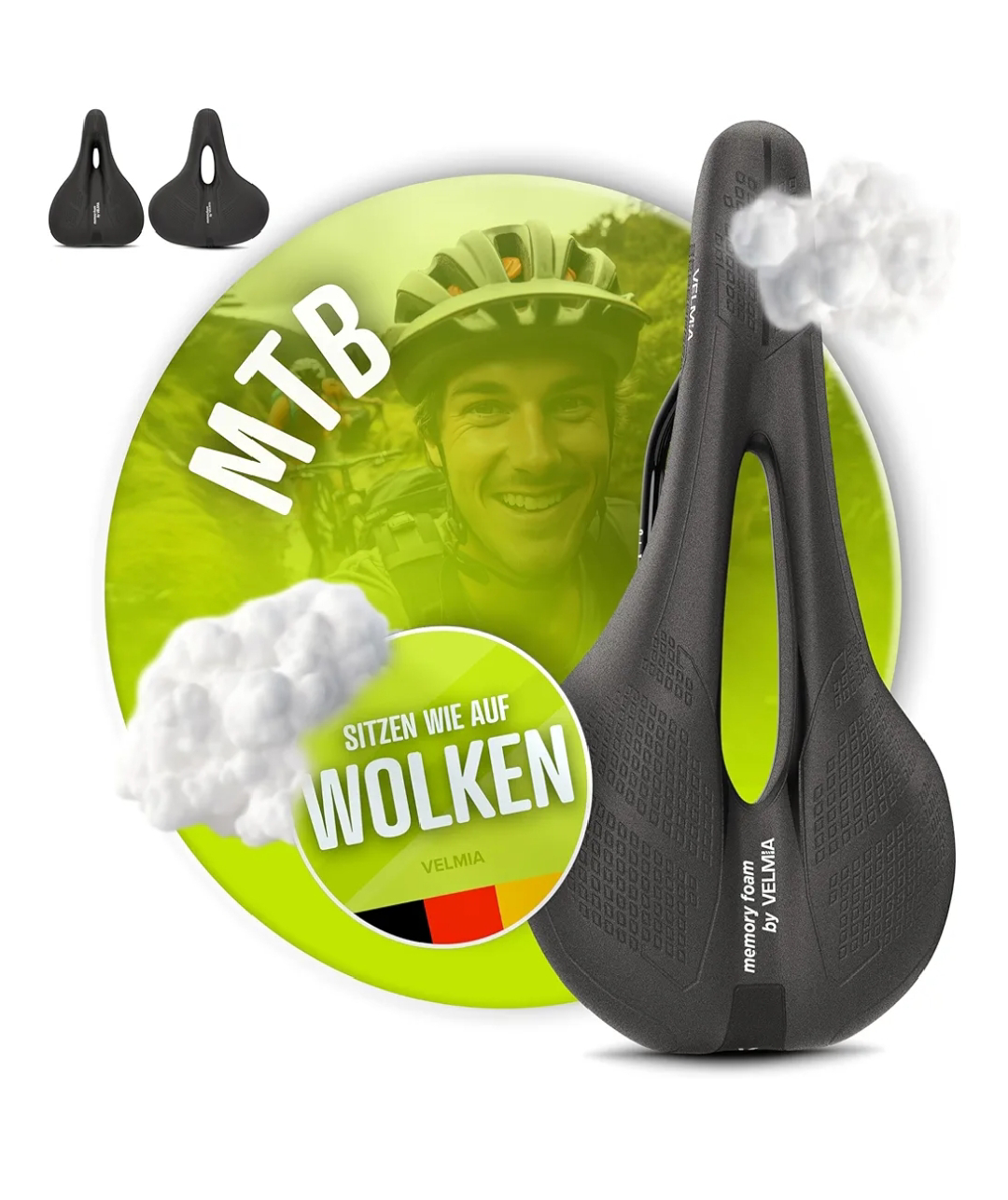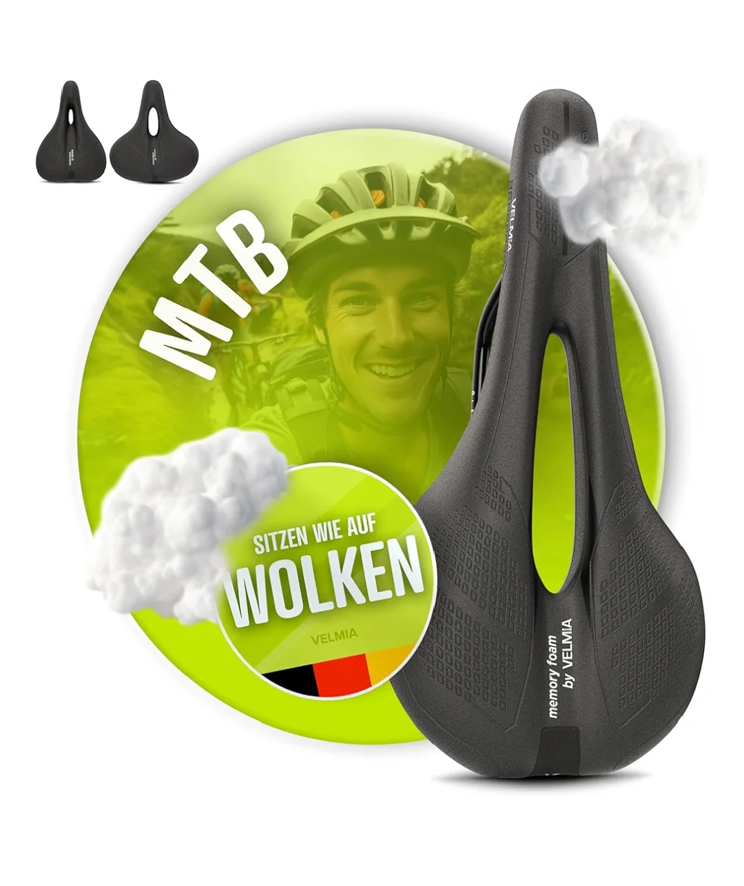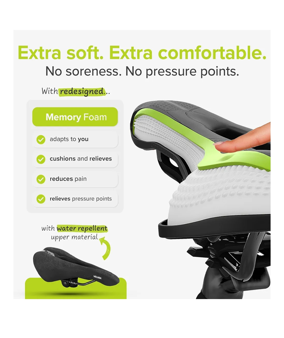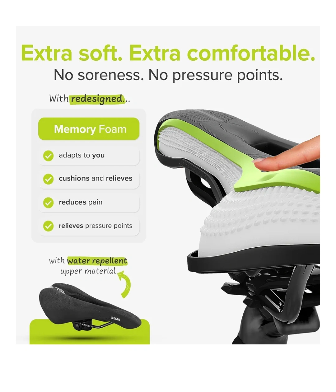 Velmia Bike Seat Made of Comfortable Memory Foam I Bicycle Seat with Ergonomic Zone Concept for Men & Women I Bike Saddle for BMX, MTB & Road.
