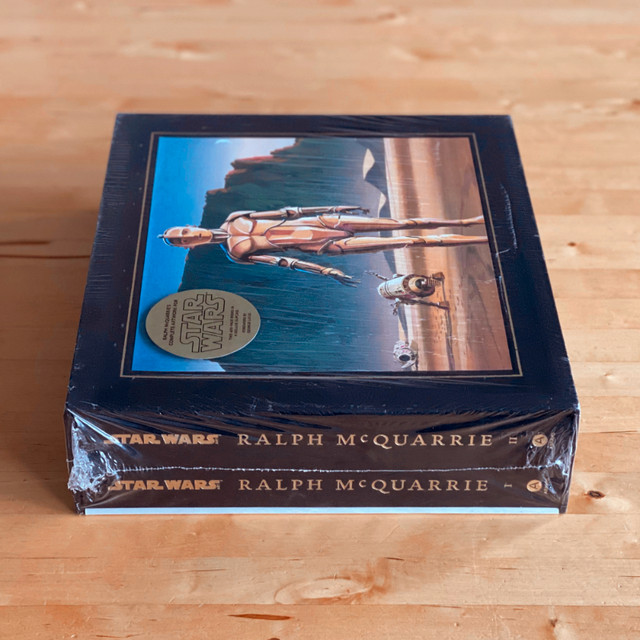 Star Wars Art: Ralph McQuarrie is a comprehensive tribute to cinema’s most beloved and influential concept artist, and the most definitive collection of the artist’s Star Wars work ever assembled. Over 20-pound 2-volume set. Brand new and still remains shrink wrapped.