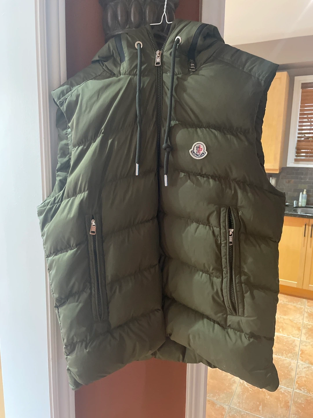 26Selling a Moncler padded vest in olive green. It's in great condition and ready for a new home. Perfect for layering during those cooler Canadian days!