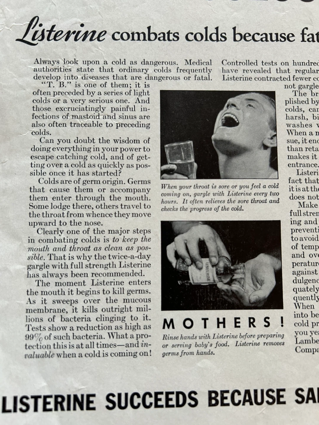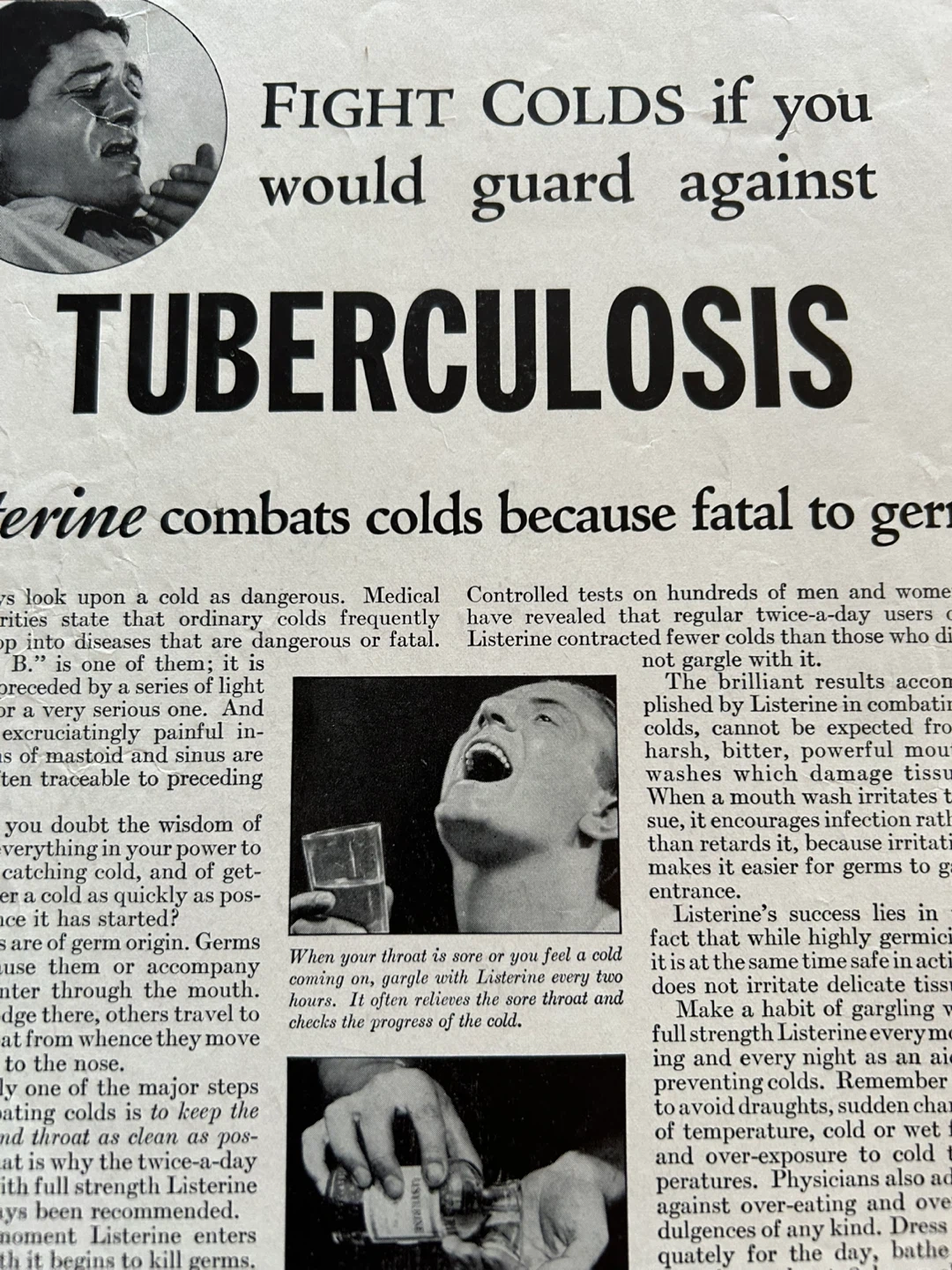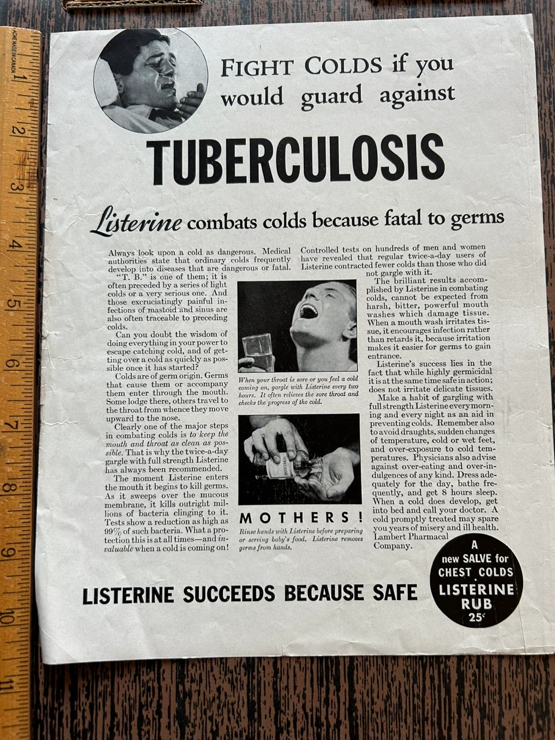 $15 1933 Listerine Rub Fights Colds That Could Develop Into Tuberculosis Print Ad vintage health TB 1933 Listerine Rub Fights Colds That Could Develop Into Tuberculosis Print Ad vintage antique advertising An Original (I only sell originals. No copies or reproductions.) Vintage Print Ad Magazine Paper Advertisement. Has another different ad on back. From a magazine Nice Historical Collector's piece. Page is approximately 8 x 11 inches and ready for framing should you choose to do so. Good Used Vintage Clean Condition. Normal shelf wear associated with use, age, and storage only. Please ZOOM in on the image for Detail to your own personal satisfaction. Message me if you have any questions abou the listing. Thank you. 15.00 Flexible re pickup Elmsdale Road M4J 3M3 Donlands O'Connor East York Don Mills south exit off DVP