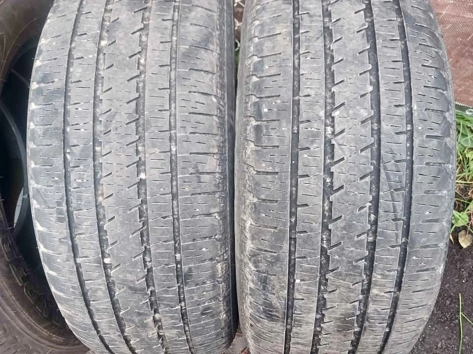 Two used Bridgestone Dueler H/L all-season tires, size 275 55 r20, for trucks, Jeeps, or SUVs.