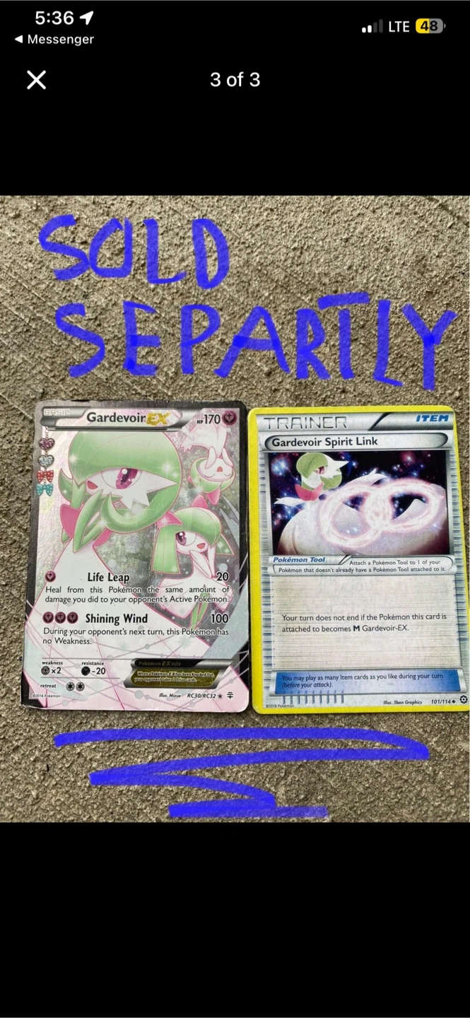 Selling a Gardevoir EX and Gardevoir Spirit Link Pokemon card set. These cards are in good condition and ready for a new home!