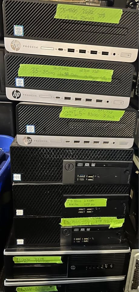 Clean and working desktop computers for sale. I can sell in bulk if you want. I also sell network, Bluetooth adapters, hard drives, rams, chargers, adapters, monitors. Feel free to message if you have any questions!