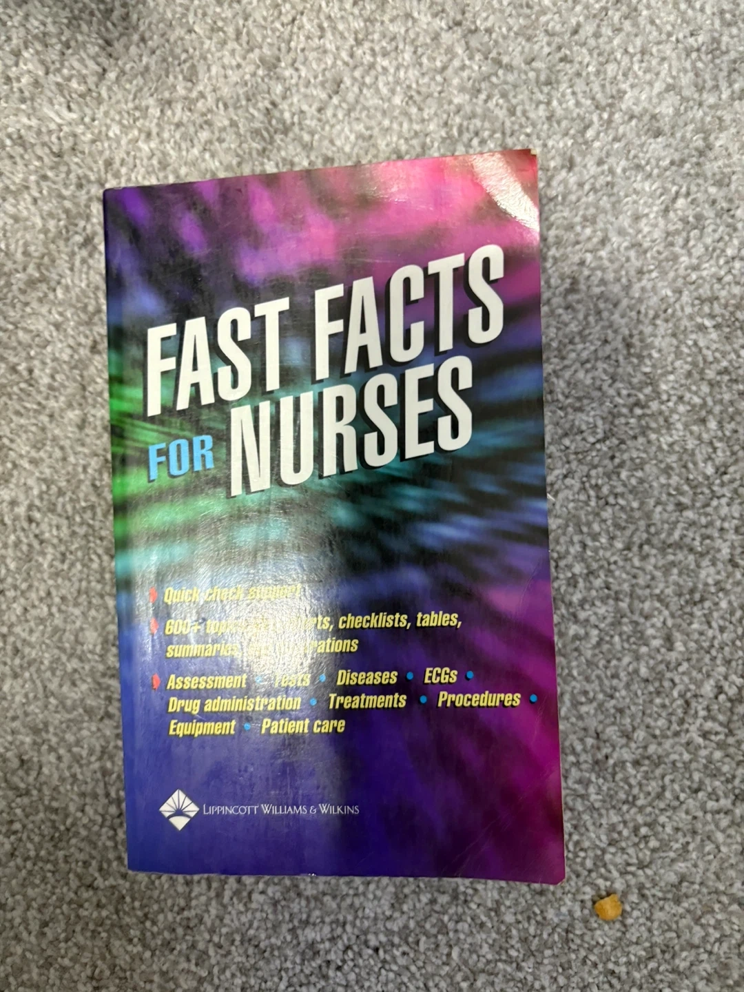 Selling a copy of "Fast Facts for Nurses" by Lippincott Williams & Wilkins. It includes quick checklists, tables, and summaries covering assessments, tests, diseases, ECGs, drug administration, treatments, procedures, equipment and patient care