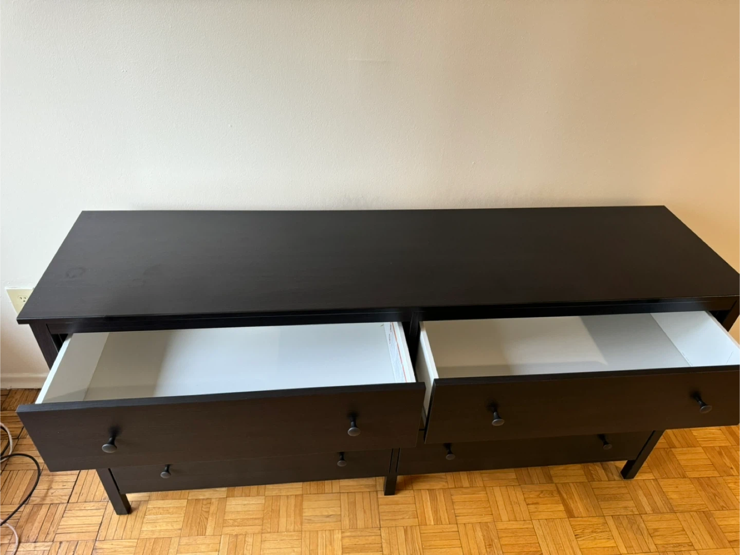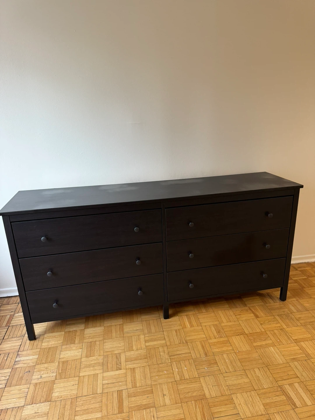 346PICK UP ONLY. See slides for dimensions. Selling a gently used IKEA Hemnes 6-drawer dresser in black-brown. It's in great shape and offers lots of storage. A few imperfections on the body. Perfect for organizing your clothes and other belongings!