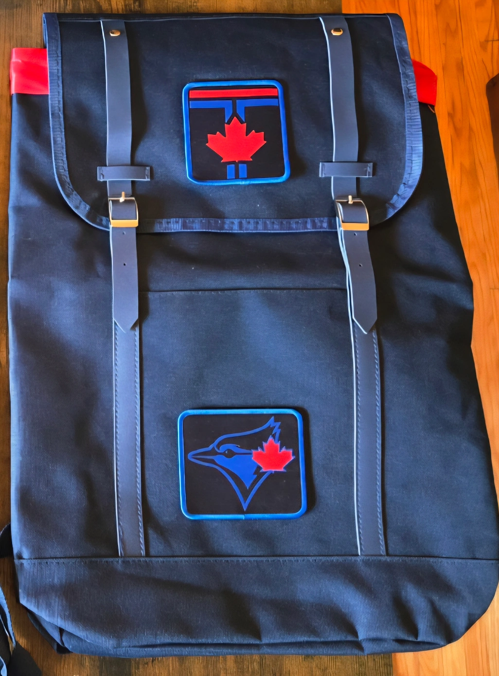 Selling a Toronto Blue Jays city connect backpack! New never used, in mint condition. The backpack is in a stylish navy blue with red accents and adjustable straps for a comfy fit. It has a draw string closure under the top flap as well. The inside lining is red.