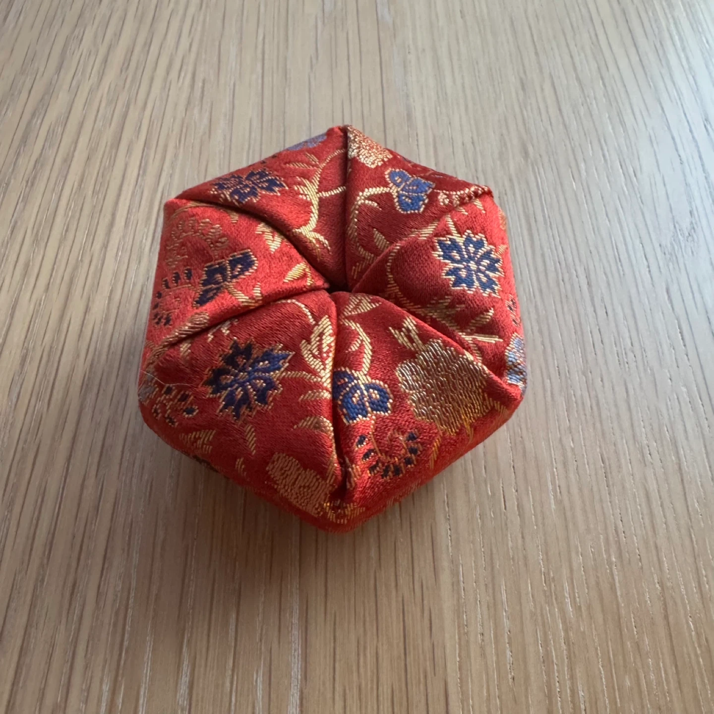 This is a unique red fabric box with a floral pattern from Japan. It's in great condition and would be great for storing small items or as a decorative piece.