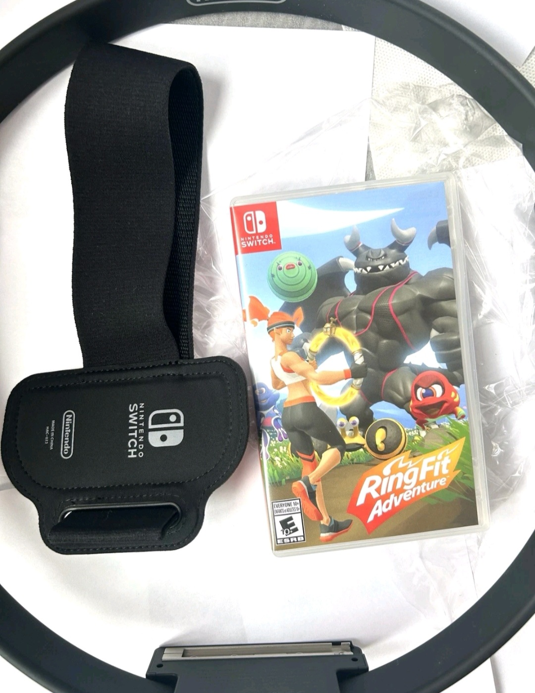 Ring Fit Adventure Nintendo Switch Complete w/ Game, Round Controller, and Strap in very good condition, well maintained, and fully functional. This item was never used. However, there is a tiny scratch around the Nintendo sign of the round controller. The box was misplaced.
