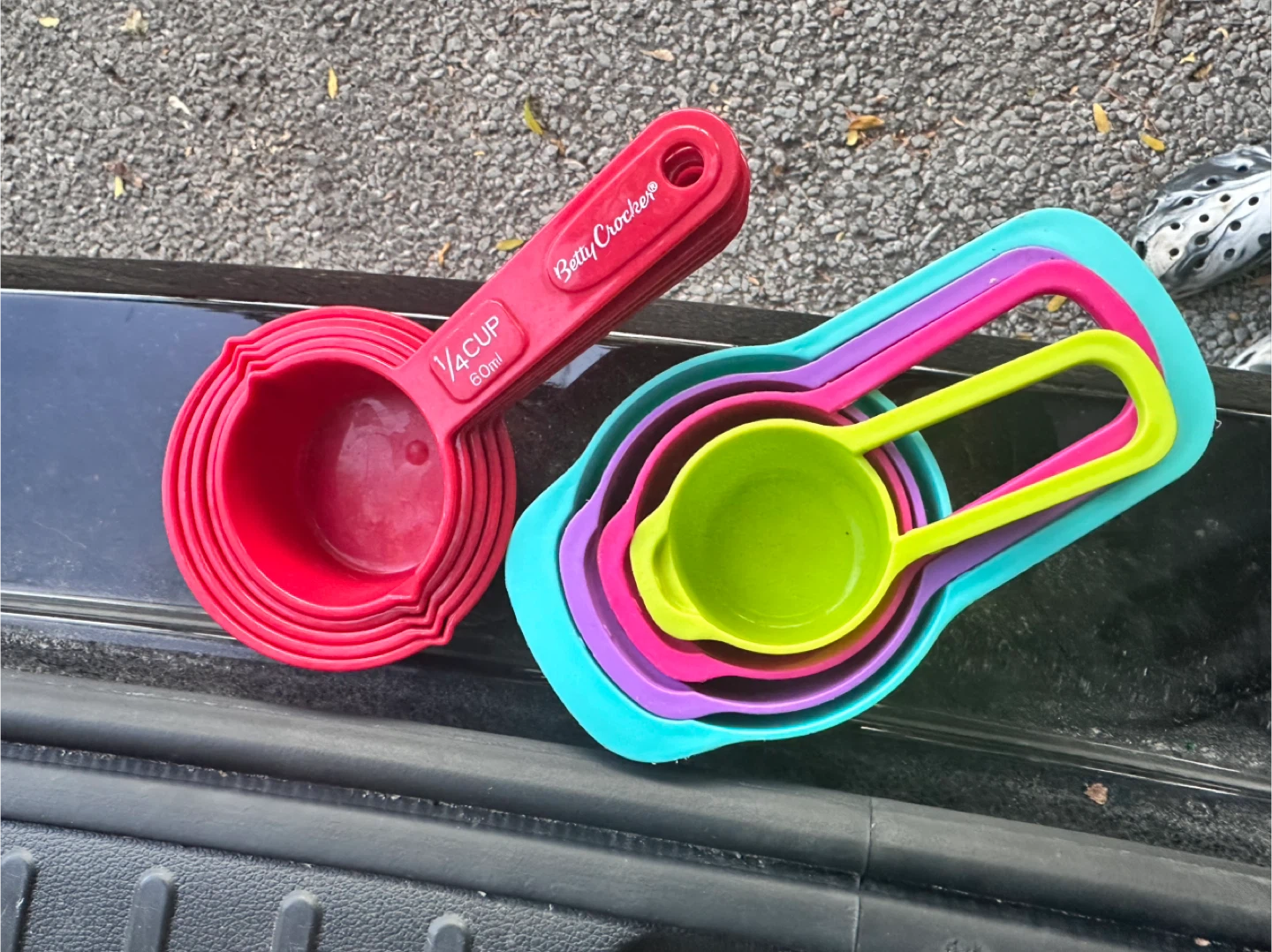 Selling a set of Betty Crocker measuring cups! This colourful set includes various sizes, perfect for all your baking needs. They are in great condition and ready for a new home!