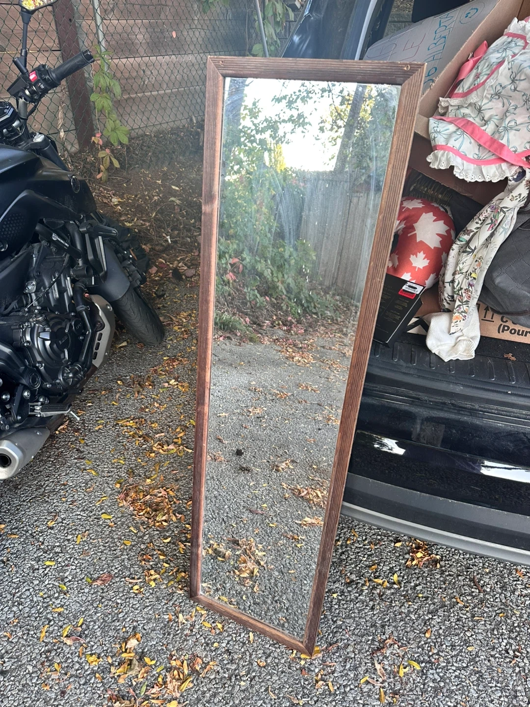 Selling a framed standing mirror! It has a wooden frame and is in good condition. Perfect for adding a touch of elegance to any room