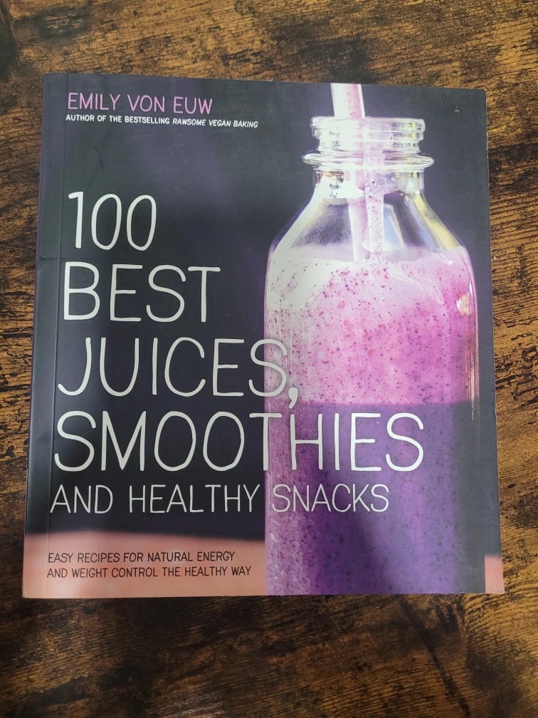 Selling a copy of "100 Best Juices, Smoothies and Healthy Snacks" by Emily Von Euw! This book is packed with easy recipes for natural energy and weight control. It's perfect for anyone looking to boost their metabolism and incorporate more fruits and vegetables into their daily routine. There is some slight damage on the side of the book.