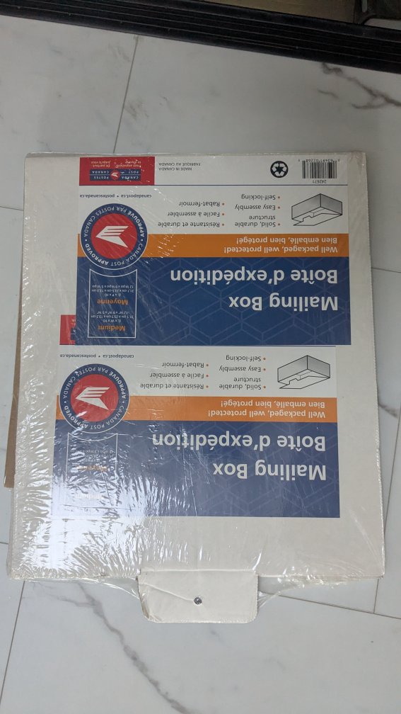 Giving away a medium Canada Post mailing box. It's well packaged and protected, with a solid, durable structure. It's easy to assemble and self-locking, making it convenient for your shipping needs. Only need to wait until the strike is over. :D