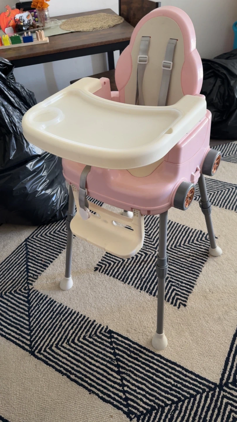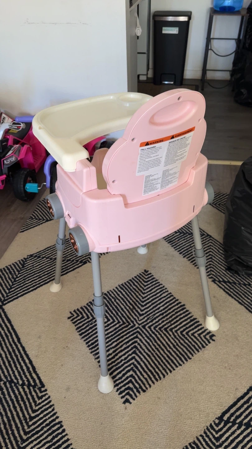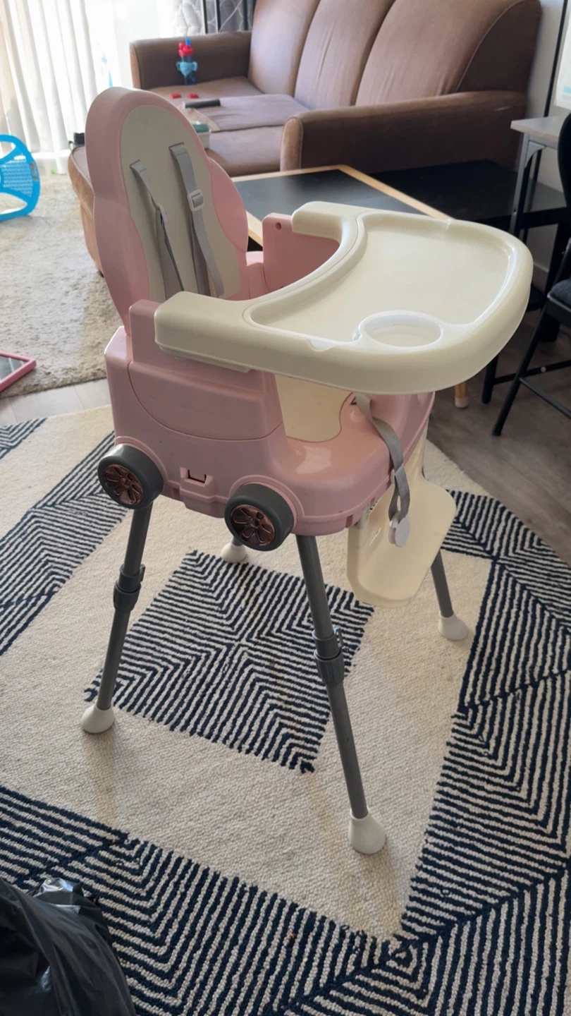 Selling a cute pink baby high chair! It's in great condition and ready for a new home. Perfect for meal times and keeping your little one safe and secure.