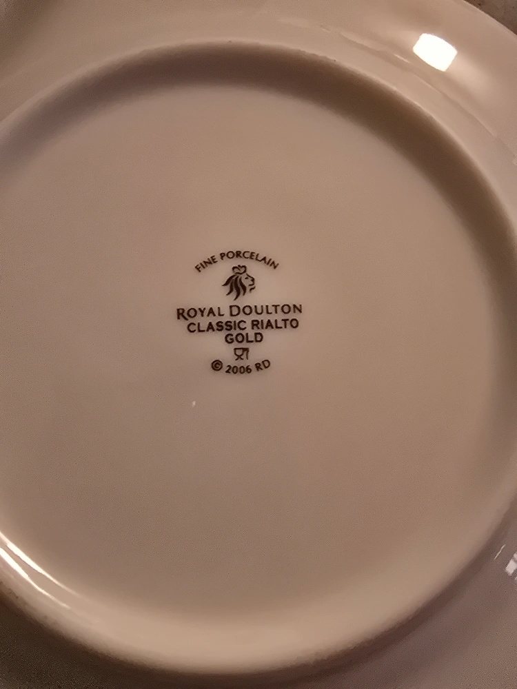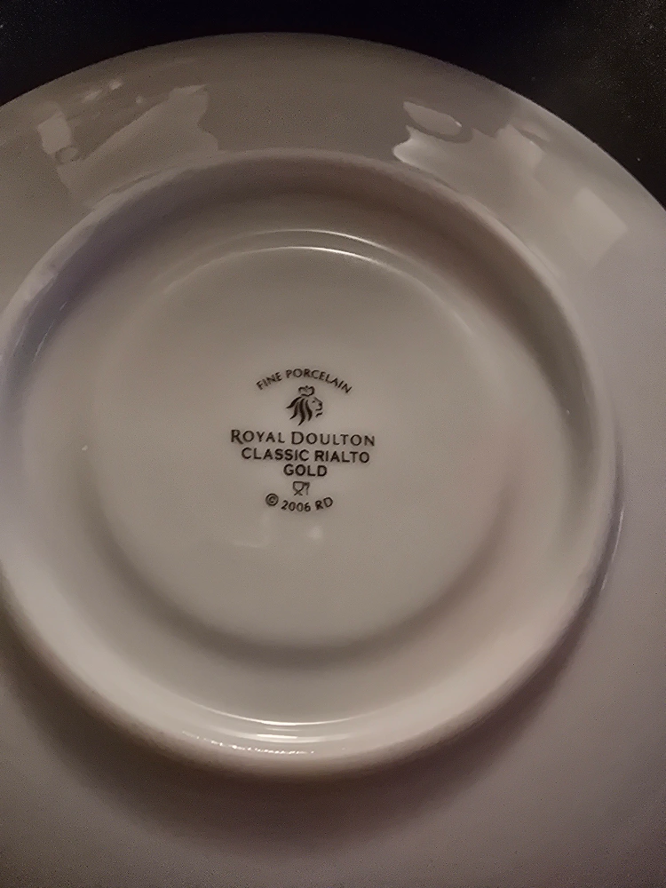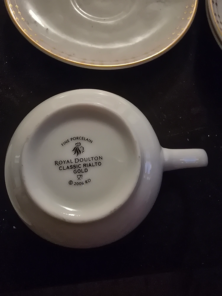 Selling a set of Royal Doulton Classic Rialto Gold fine porcelain. The set includes cups and saucers, all in good condition. These pieces are marked with the Royal Doulton logo and '2006 RD'. They're perfect for adding a touch of elegance to your tea time 12 of each for total of 36 pieces. Great for present as 2 sets of 6 pieces 120 $ for ALL, Or can divide into 4 and 8 piece set at 20$ ( each set-3 piece;1cup+2plates) pickup in etobicoke ( M9c4x5) first come first serve or prepay