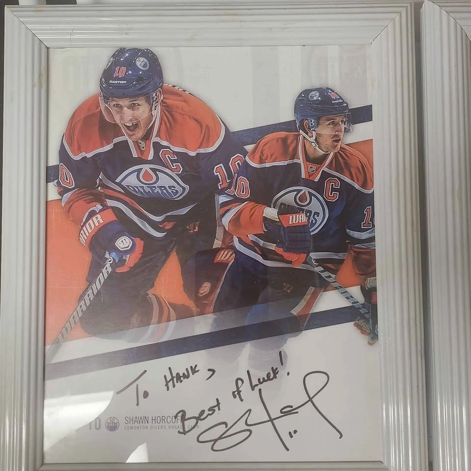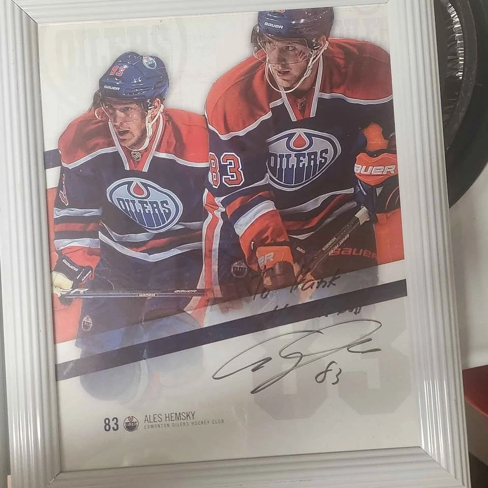 602 autographed pictures. One of Shawn Horcoff and one of Ales Hemsky when they were with the Edmonton Oilers Please note, the are autographed for "Hank". $50 each OBO.
