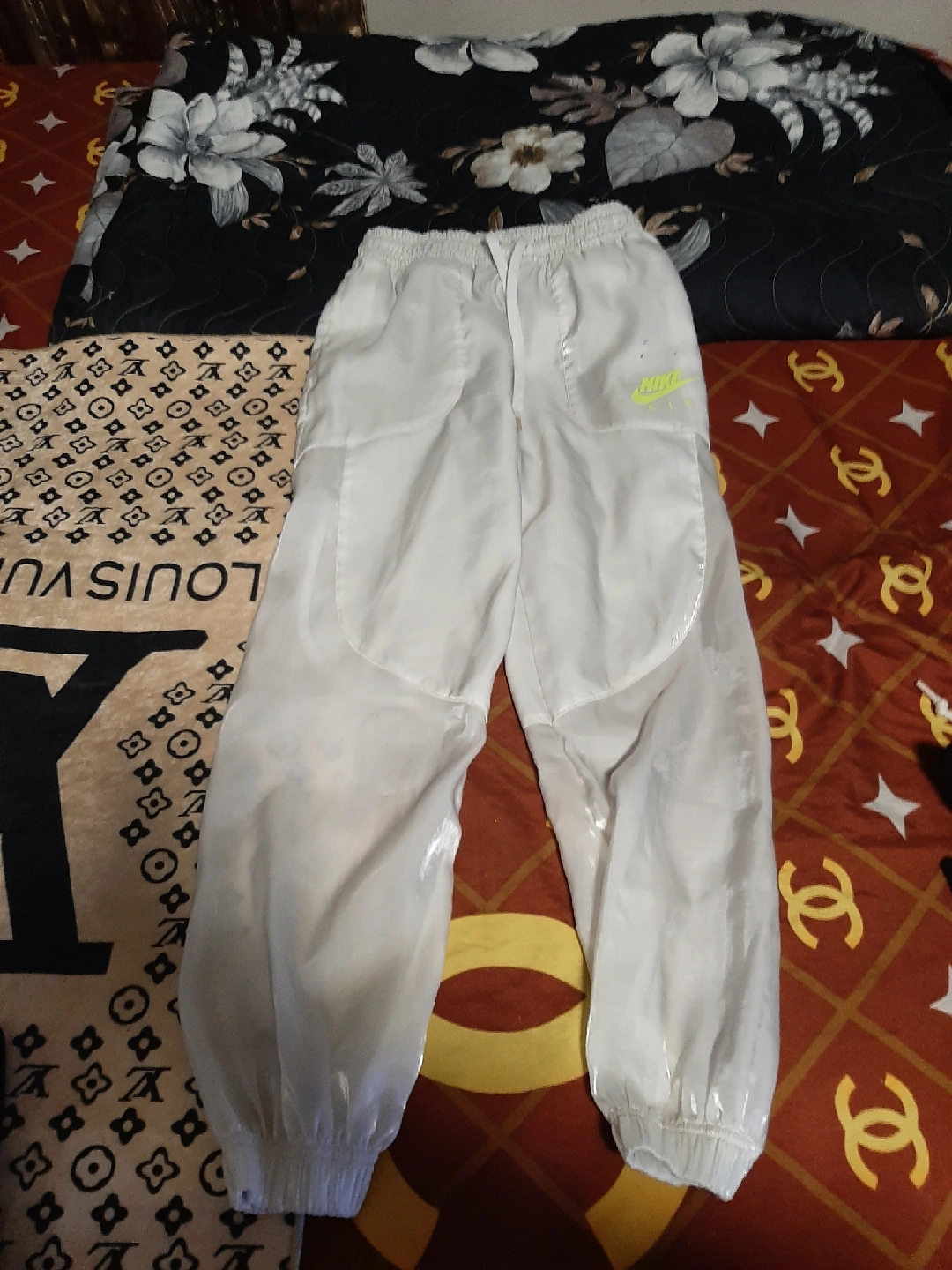 86please see the pictures a pair of Nike Air women's pants in size XS. They are white with a neon yellow Nike logo. There are a couple of small marks, as shown in the photos. Perfect for workouts or casual wear!