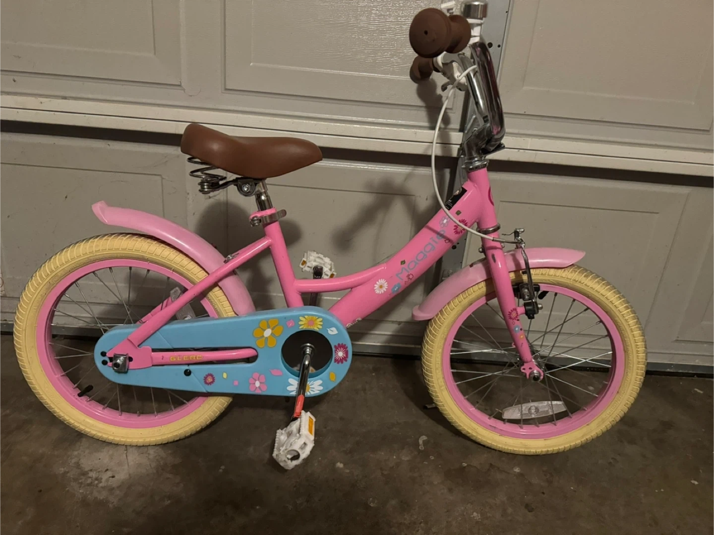 Selling a cute Maggie girl's bike! It's pink and has 16-inch wheels. Perfect for a young girl learning to ride. It's in good condition and ready for a new home