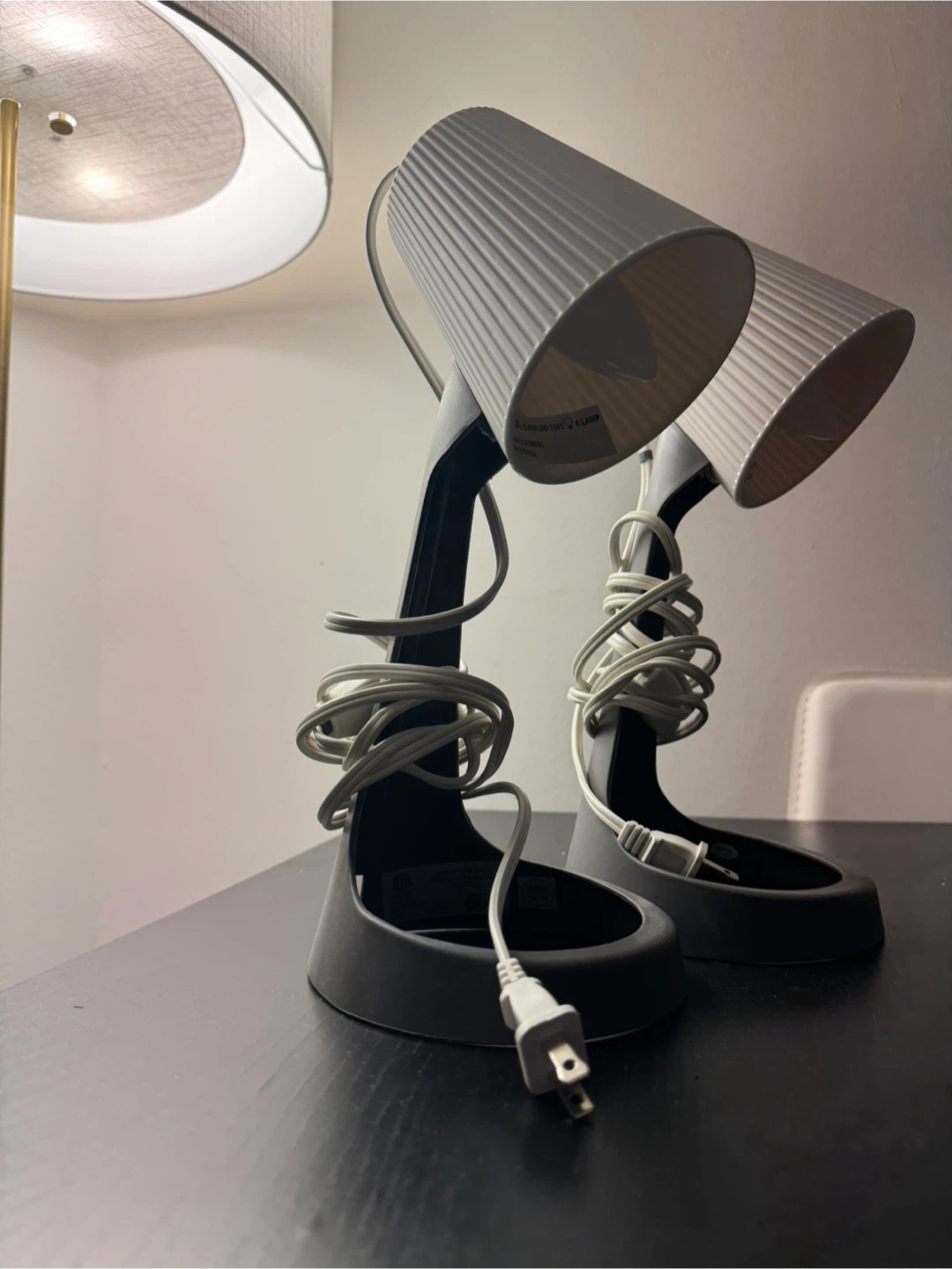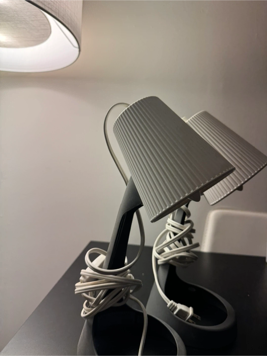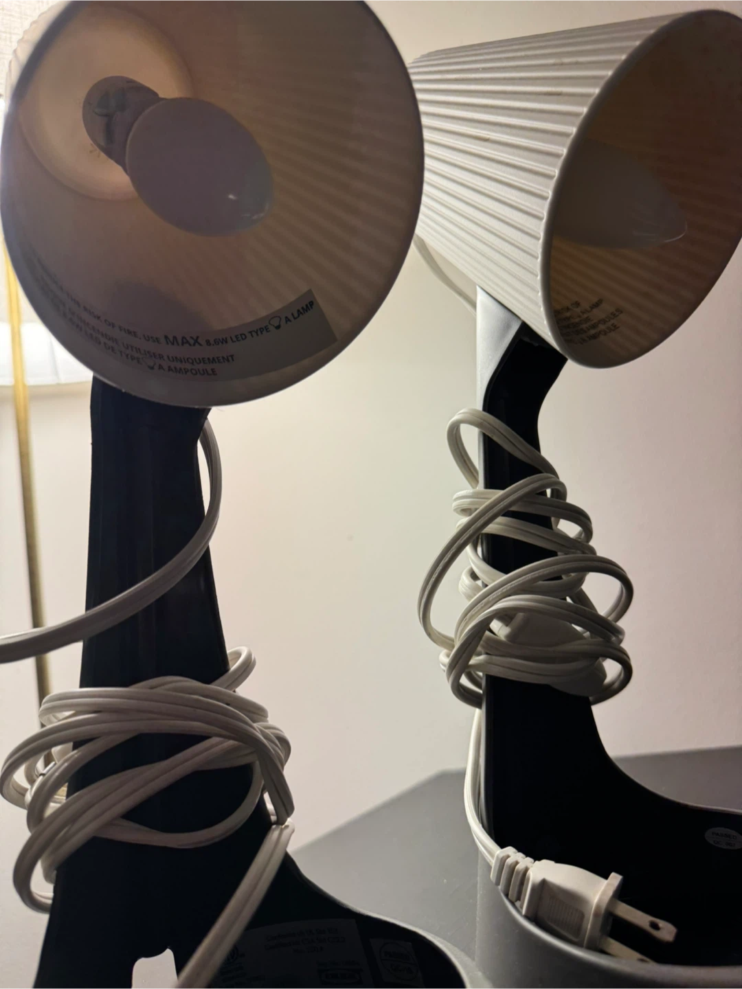 Selling a set of two IKEA TERTIAL work lamps! They're in great shape and perfect for a desk or bedside table. The shades are white and the base is a dark grey. Bulbs included!