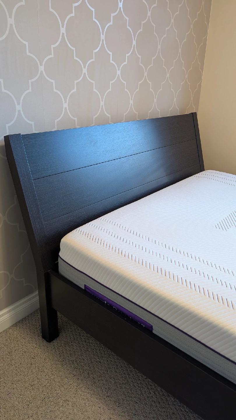 This dark wood queen bed frame is ready to bring a touch of elegance to your bedroom. It's sturdy, stylish, and in excellent condition.