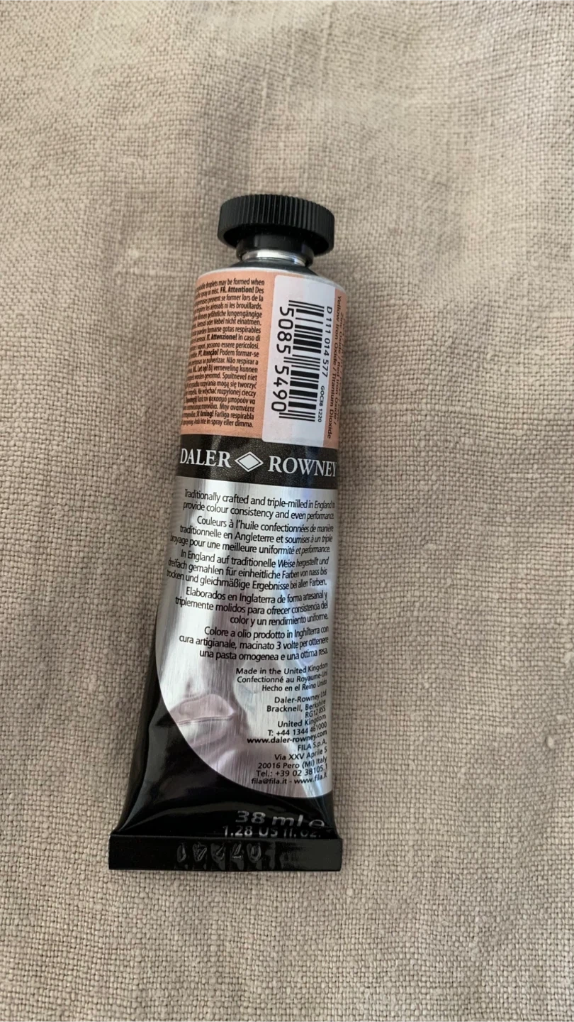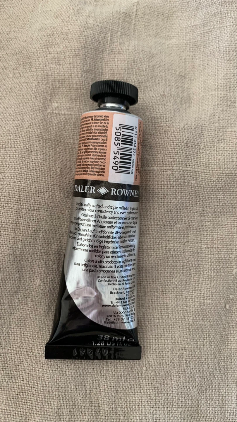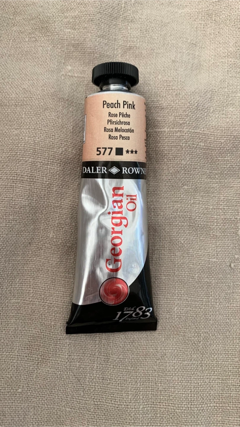 Selling a brand new tube of Daler-Rowney Georgian Oil Paint in Peach Pink. It's a 38 ml tube. Never used. The colour is a lovely soft pink, perfect for adding highlights or subtle tones to your artwork. It's traditionally crafted and triple-milled in England to provide excellent consistency and performance for artists.