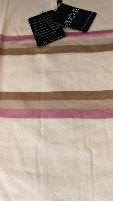 It features cream colour with classic pink and brown stripes design, made of 100% cotton.