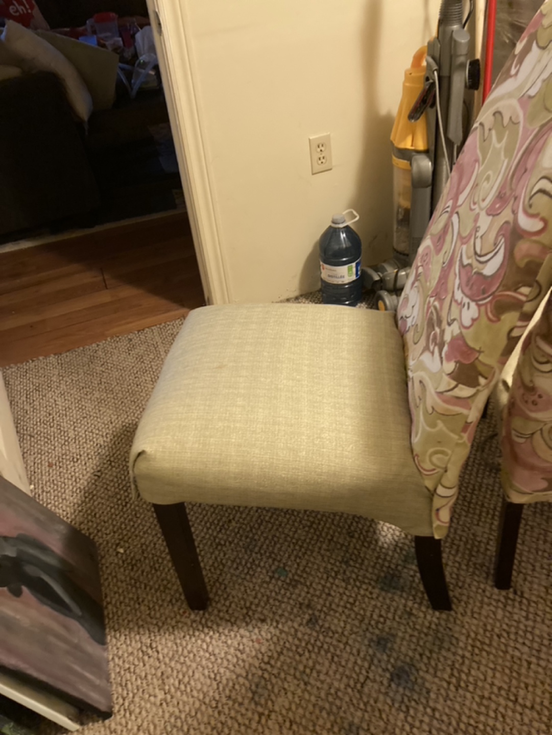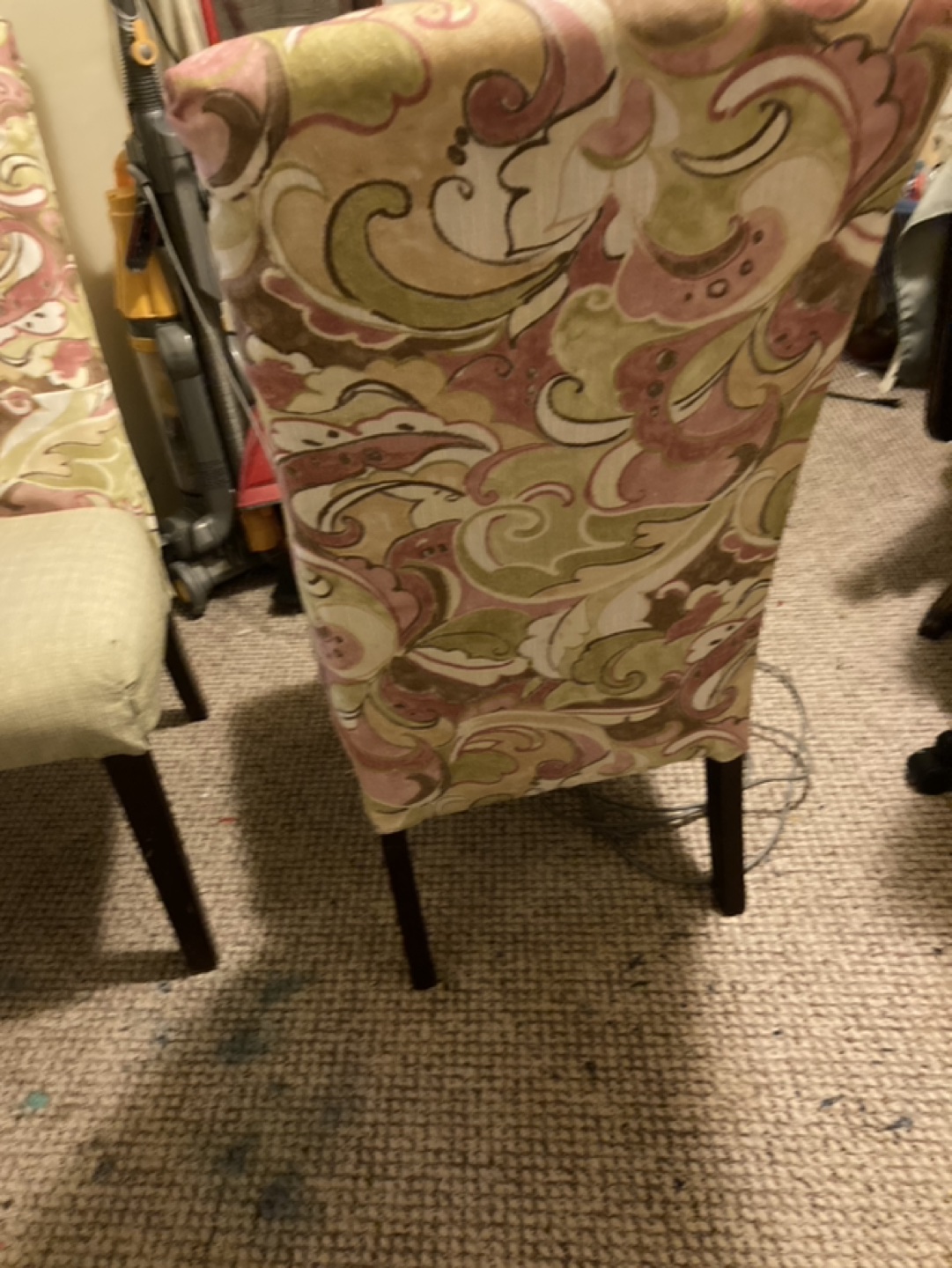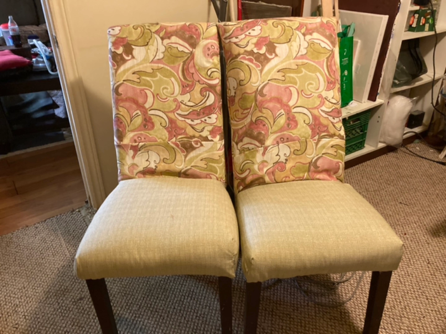 I reclaim these from my garage sale. It’s my worst attempt reupholstering ever. I measured the material incorrectly. I just got a new sofa I no longer have room for them. They are free for the taking there still a chair. You can buy the covers to just put over them or you can reupholster them if you want. It’s a great start a project.
