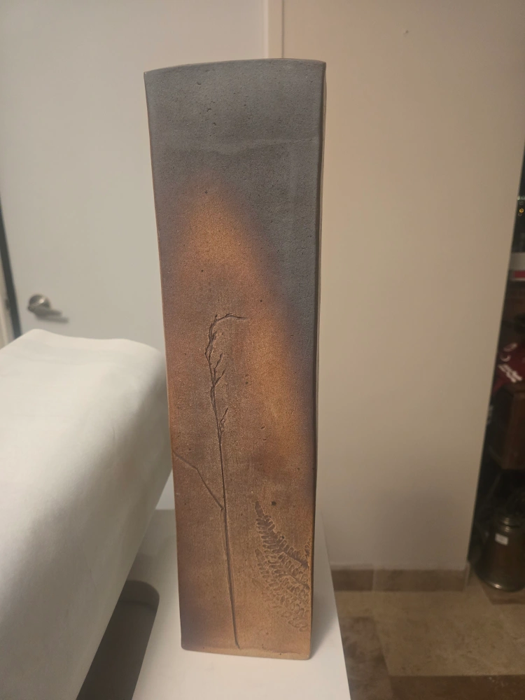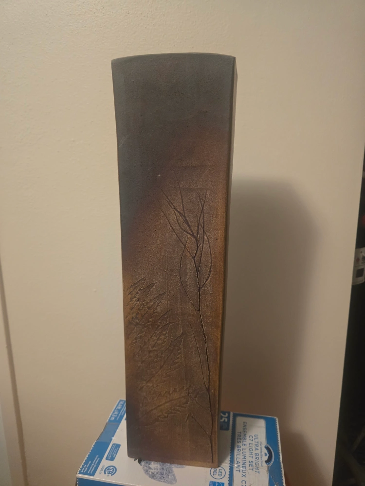 Here's a tall Kravjansky vase that measures about 21 inches in height. It has a unique design etched into the side, It's in great shape. pickup in etobicoke, first come first serve