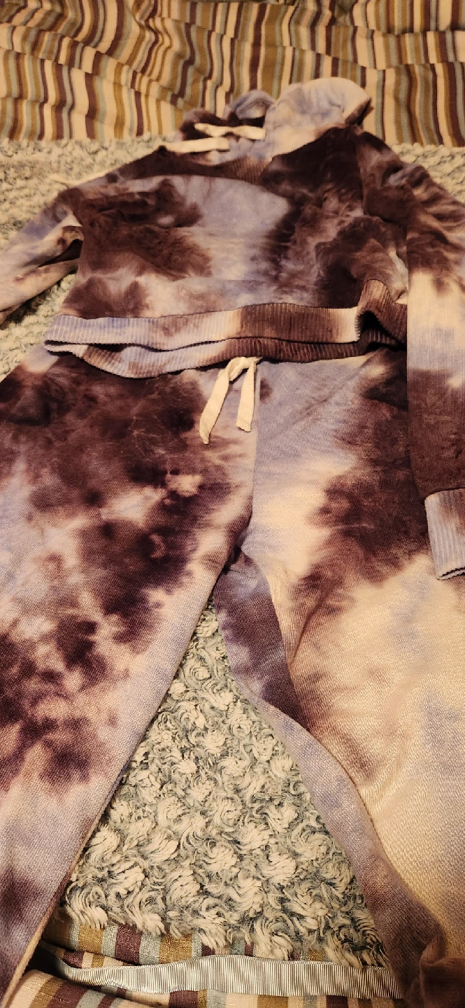 Cozy up in this super cute Blue N C tie dye lounge set! It's a size small and features a stylish tie-dye pattern in shades of blue, white, and brown. Perfect for relaxing at home or running errands in style