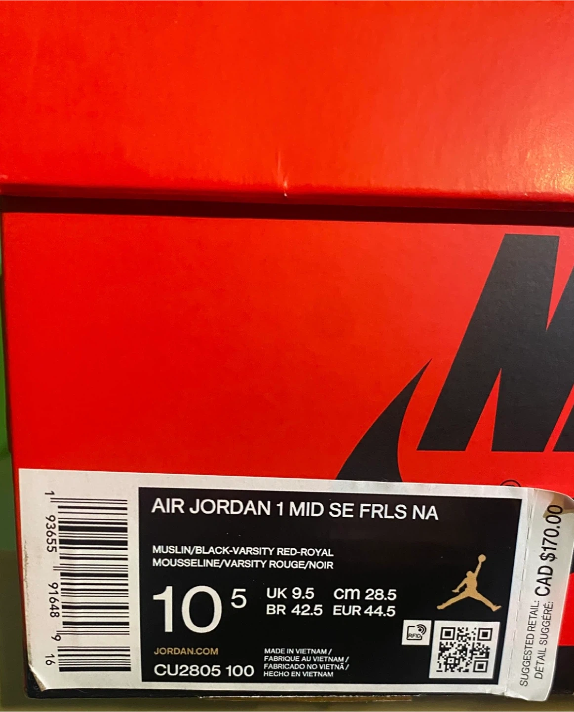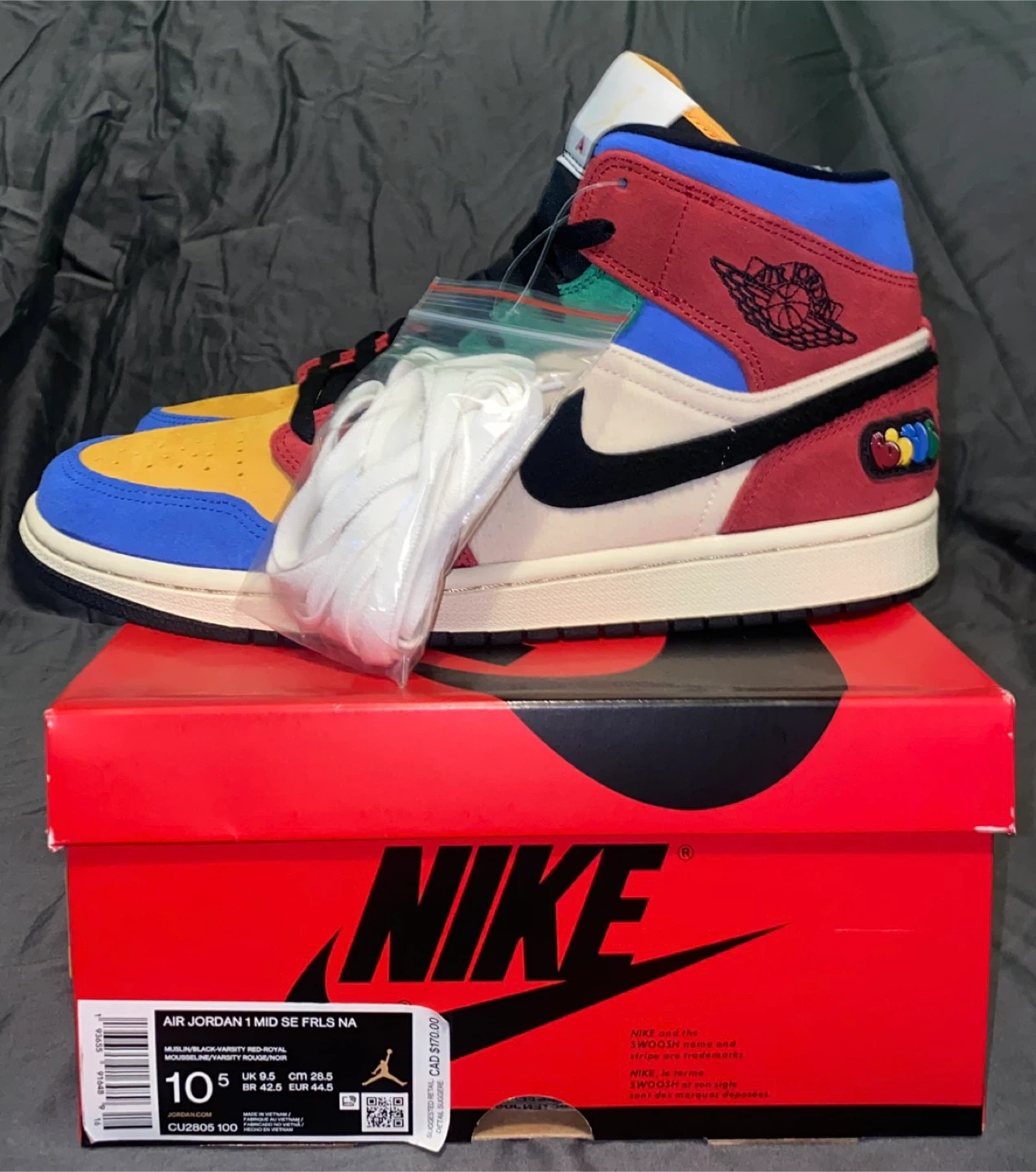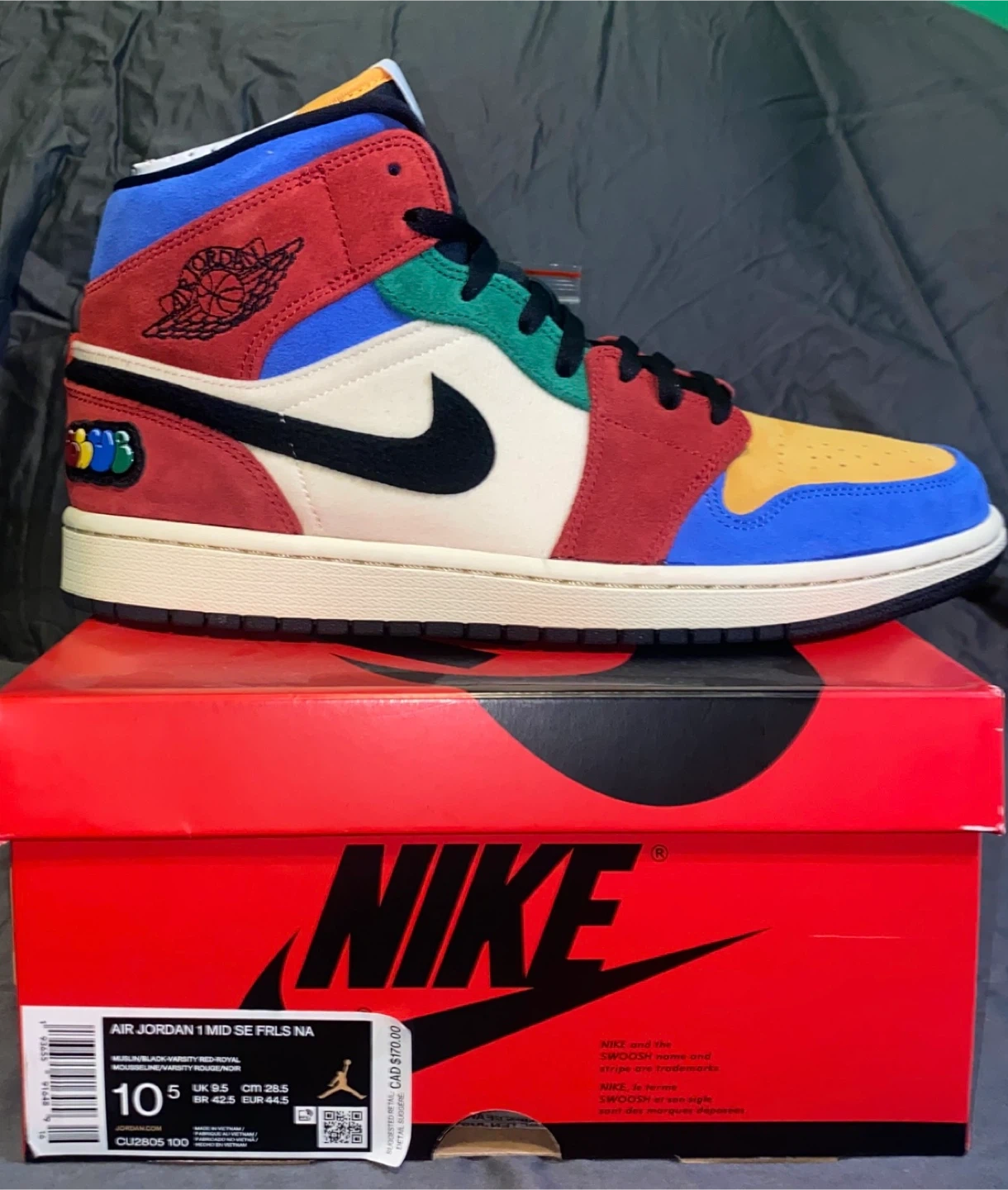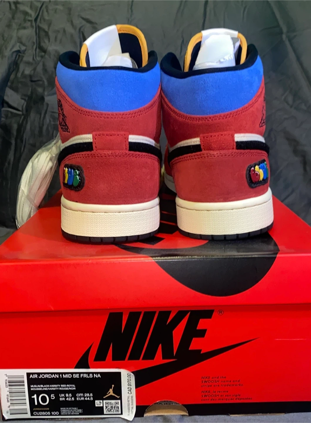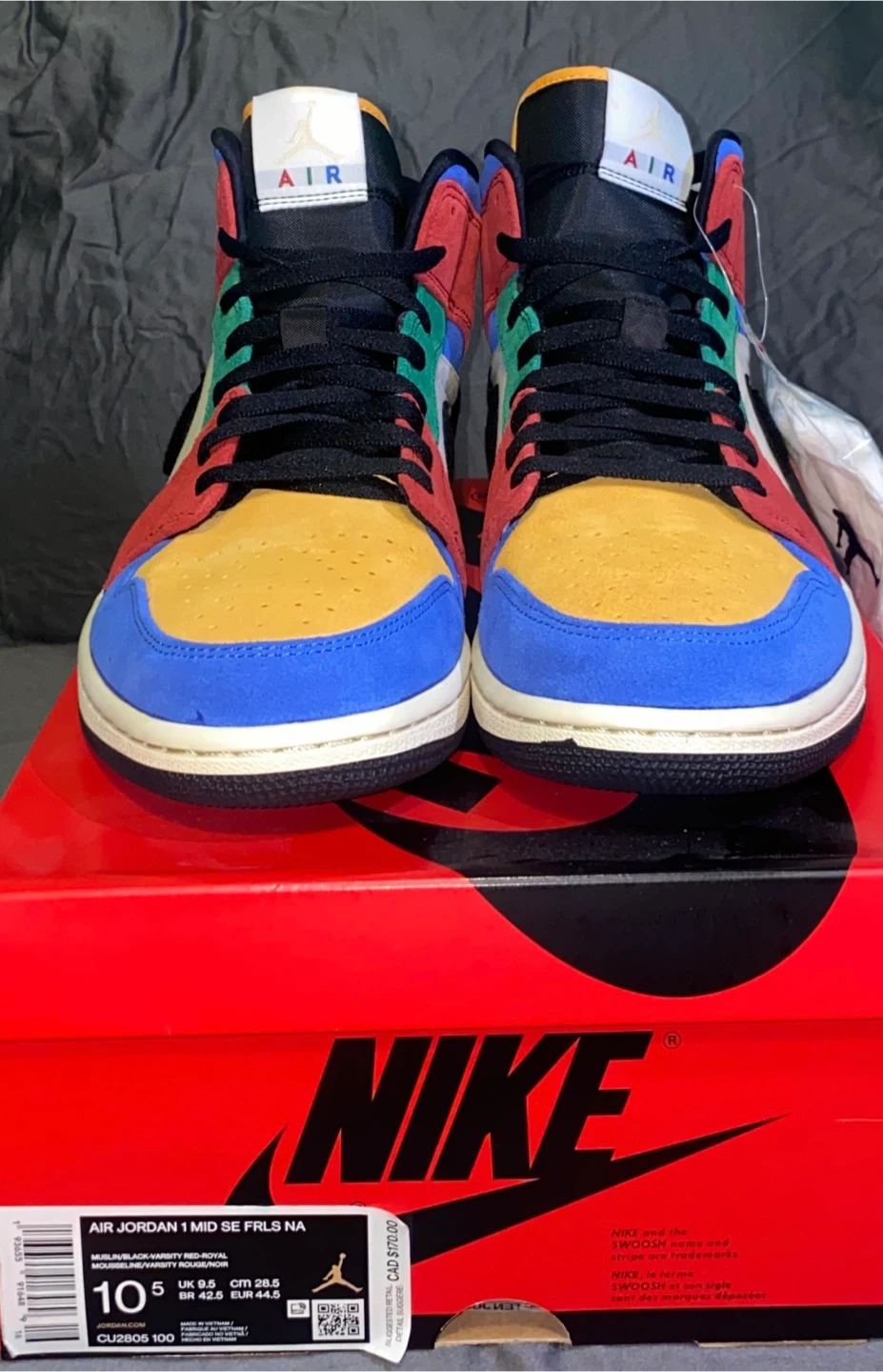Selling a pair of Nike Air Jordan 1 Mid SE FRLS NA sneakers in a vibrant multi-colour design! These are a US size 10.5 and come with the original box and packaging. A stylish addition to any sneaker collection!