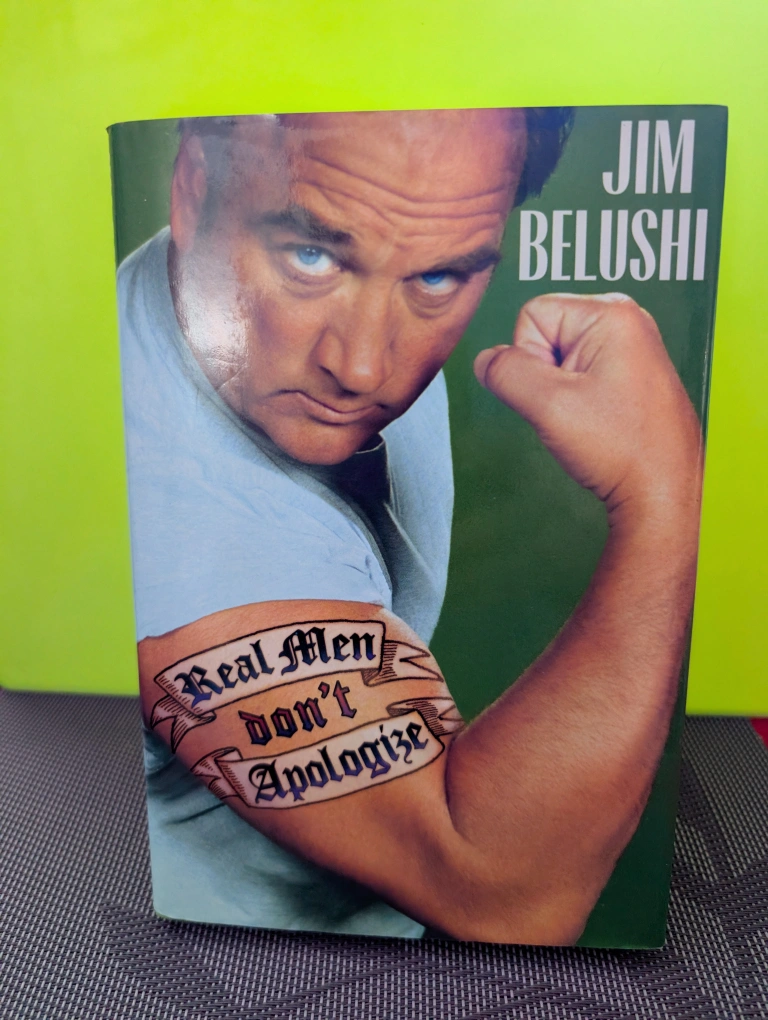 Selling a copy of "Real Men Don't Apologize" by Jim Belushi. It's a humorous look at life from the perspective of the late actor and comedian. A fun read for anyone interested in his work or just looking for a lighthearted book