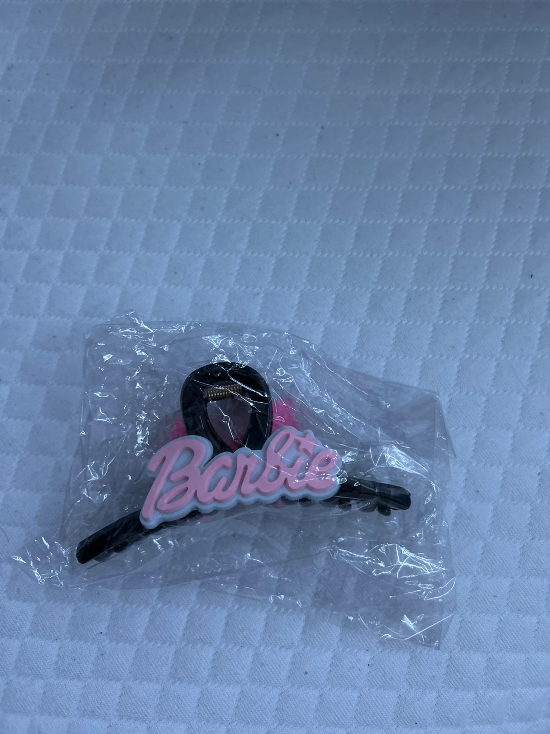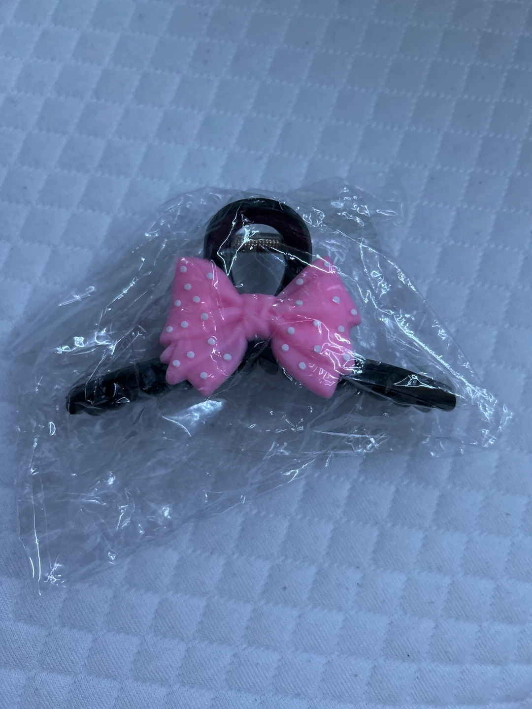Cute Barbie hair clip featuring a pink bow with white polka dots! It's brand new and still in its original packaging, perfect for adding a touch of fun to any hairstyle.
