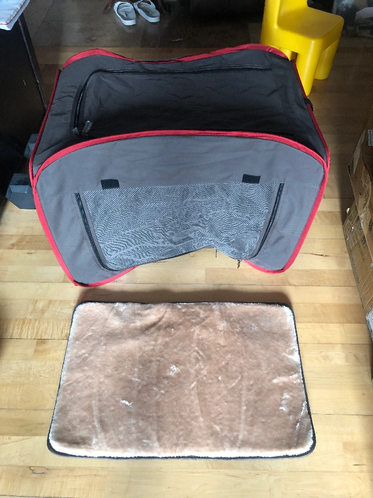 Selling a PETSFIT pet carrier in excellent condition! It features a grey and red design and comes with a soft mat for your pet's comfort. measures per photos