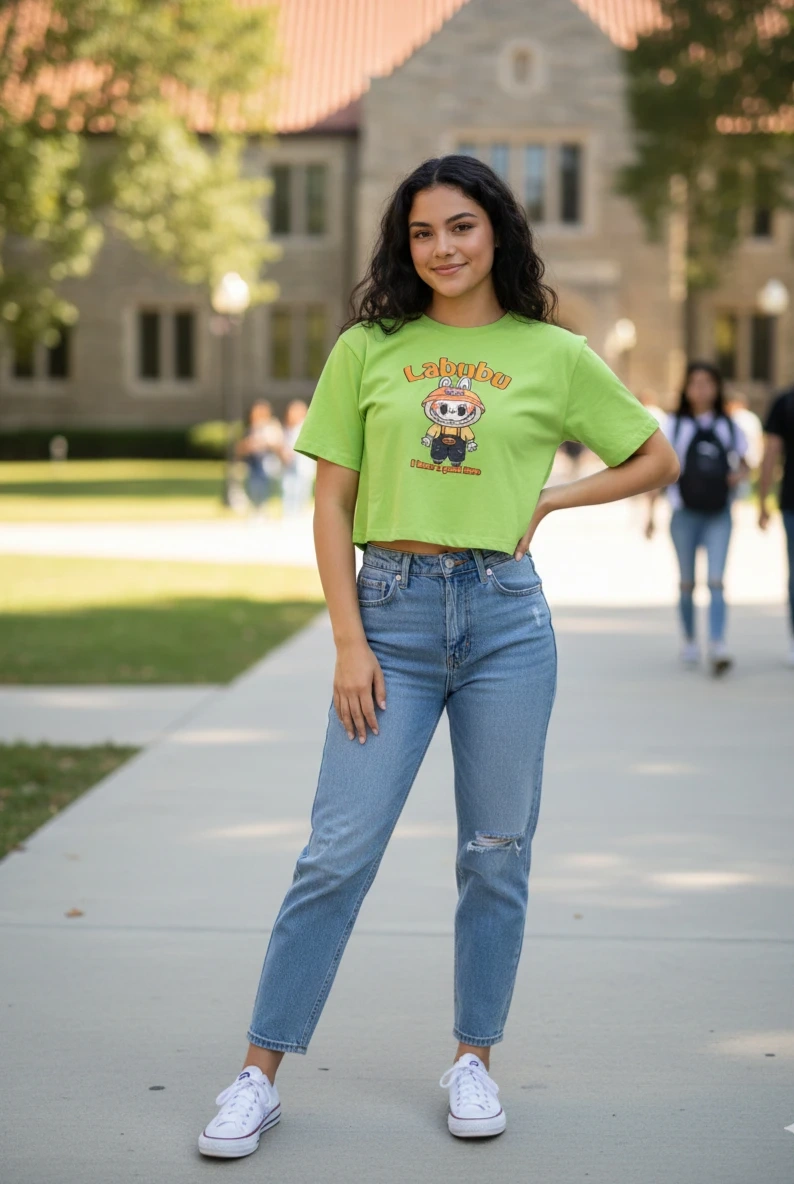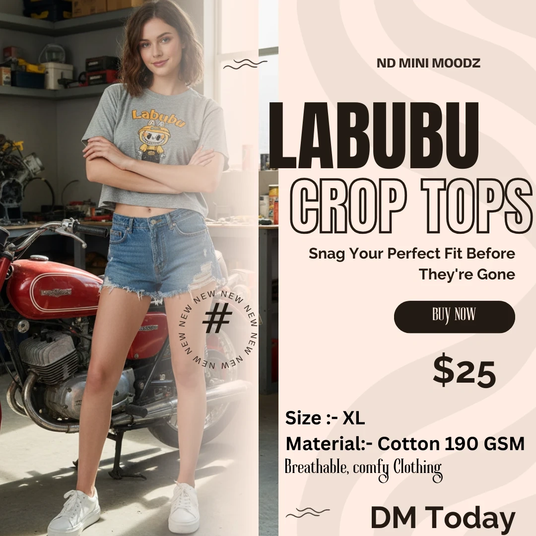 Ladies casual and Trendy wear – Comfortable Labubu Print Crop Top 👕✨ 🧵 Material: Soft, breathable, and super comfortable — perfect for home and casual wear 🎨 Design: Cute Labubu print 📏 Size: XL (Youth/Adult fit) 💛 Style: Relaxed, cozy, and easy to move in — ideal for lounging or daily wear 🌸 Occasion: Home, casual outings, or as a thoughtful occations. 📦 Pickup available
