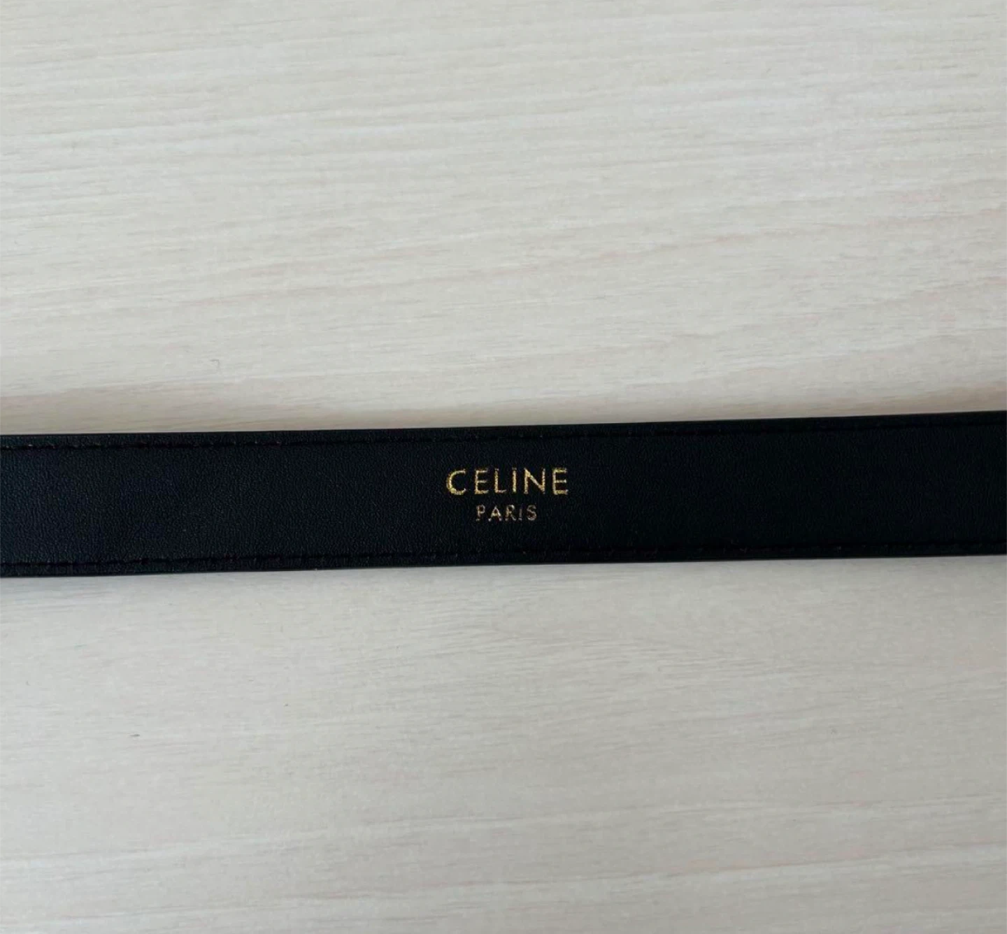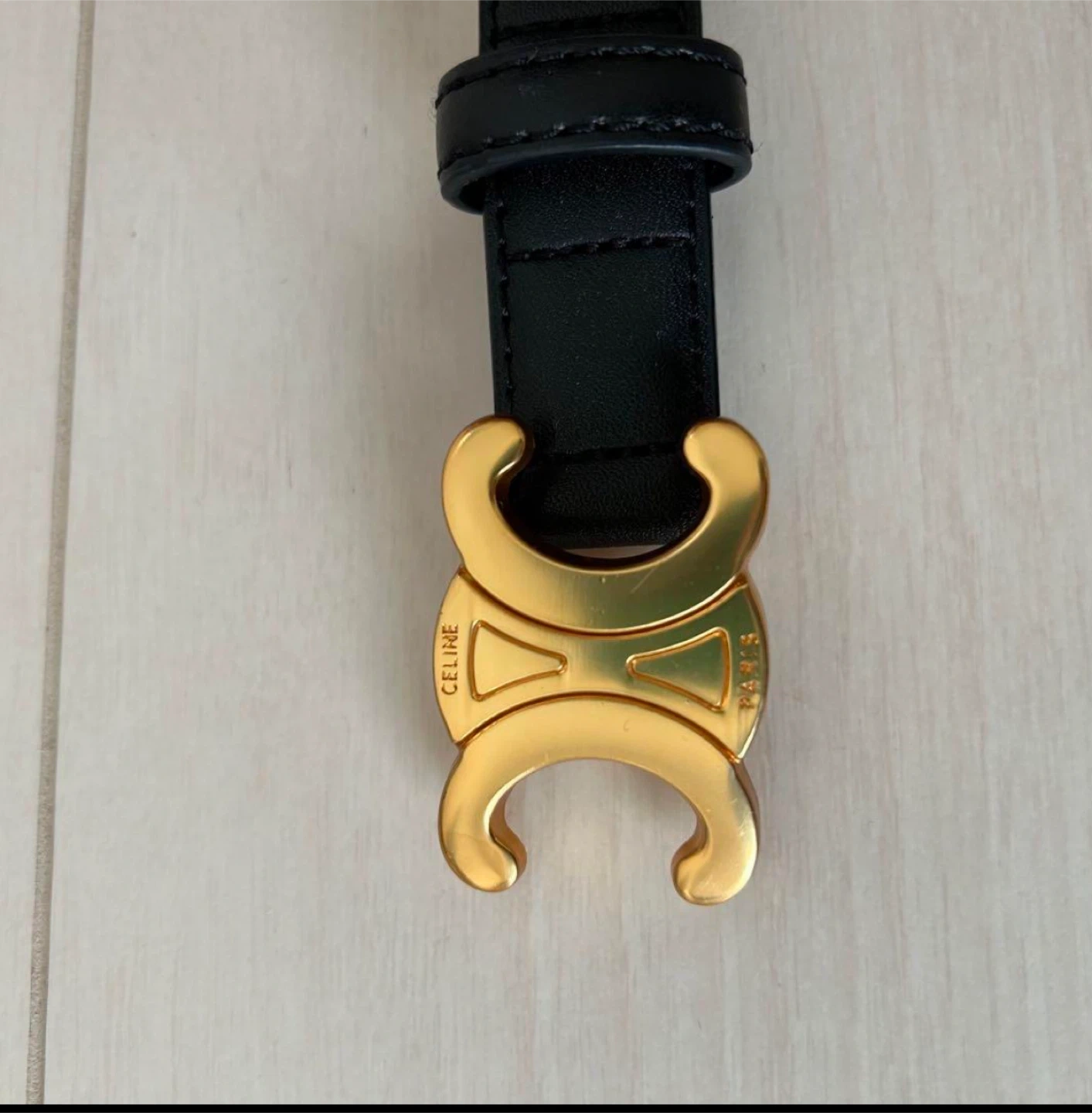 Selling a stylish black leather belt from Celine. The belt features a beautiful gold buckle that adds a touch of elegance. It’s in great condition and ready to complement your outfits!