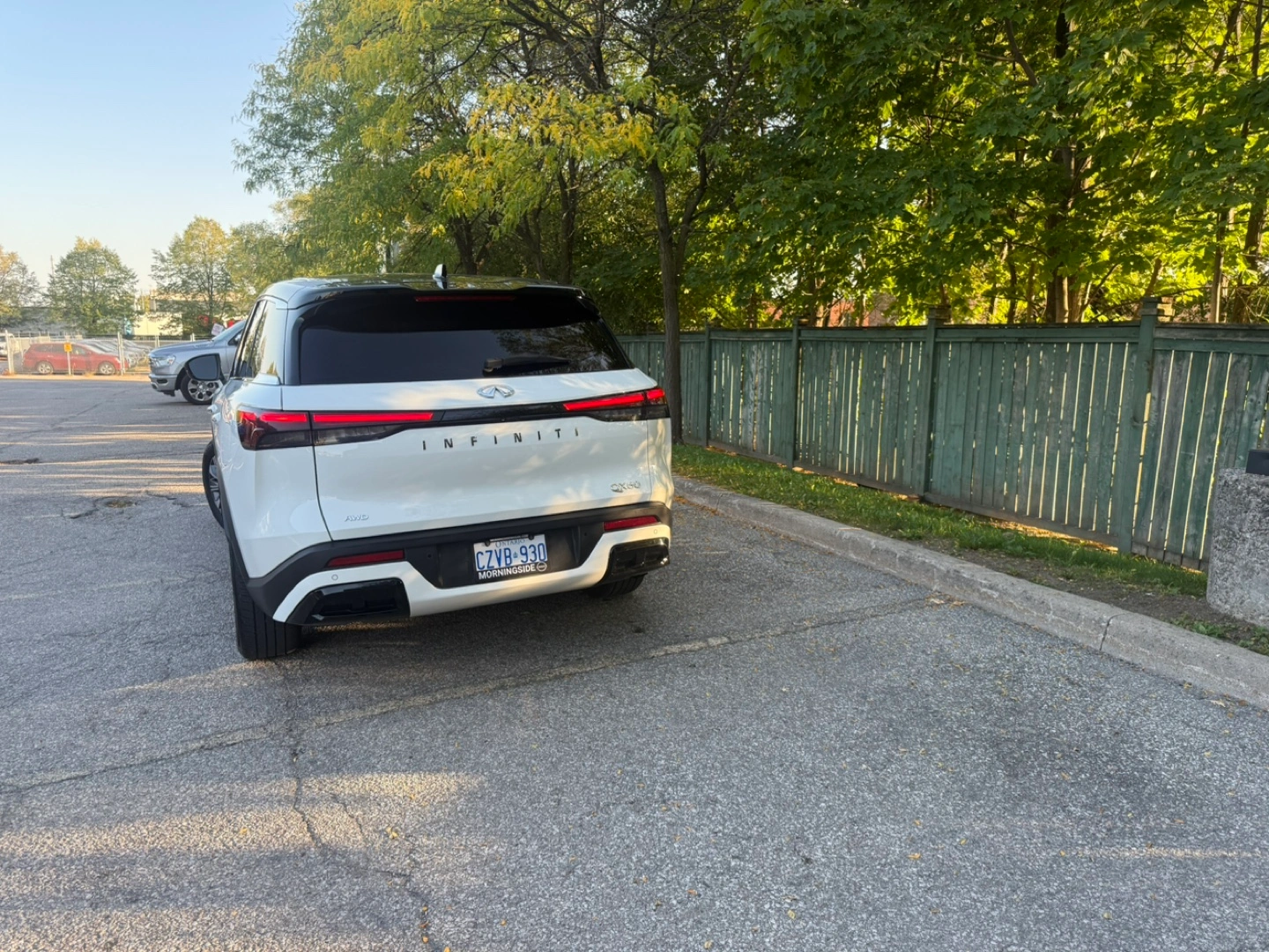 Selling a white Infiniti QX60 SUV. It features a black leather interior and a sunroof. Great for families or anyone needing extra space! It is 2022 years