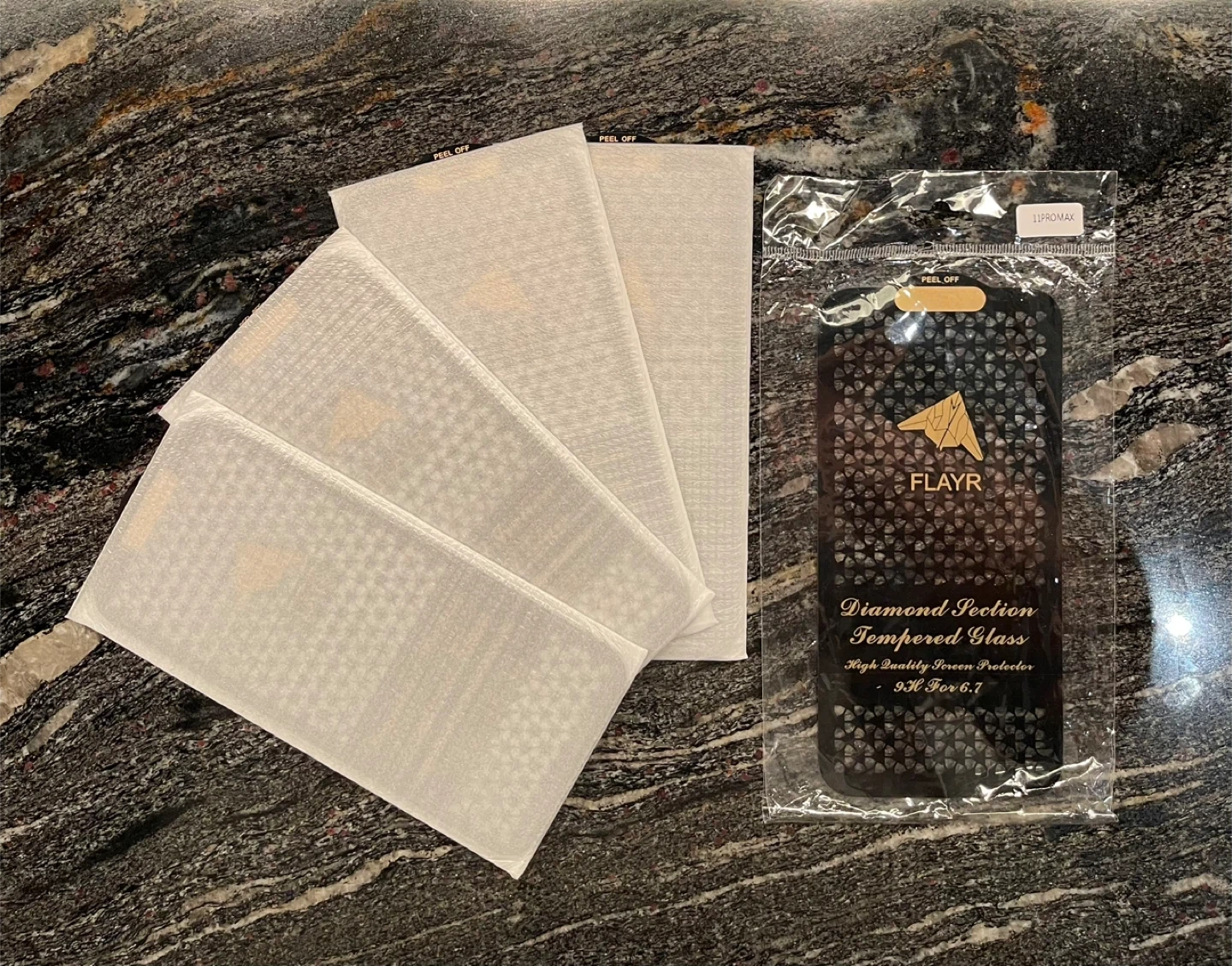 Selling a brand new iPhone 11 Pro Max FLAYR Diamond Section Tempered Glass screen protector. It's a high-quality screen protector with 9H hardness, designed for 6.7-inch screens.