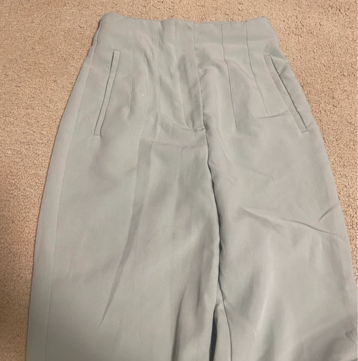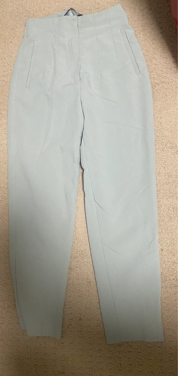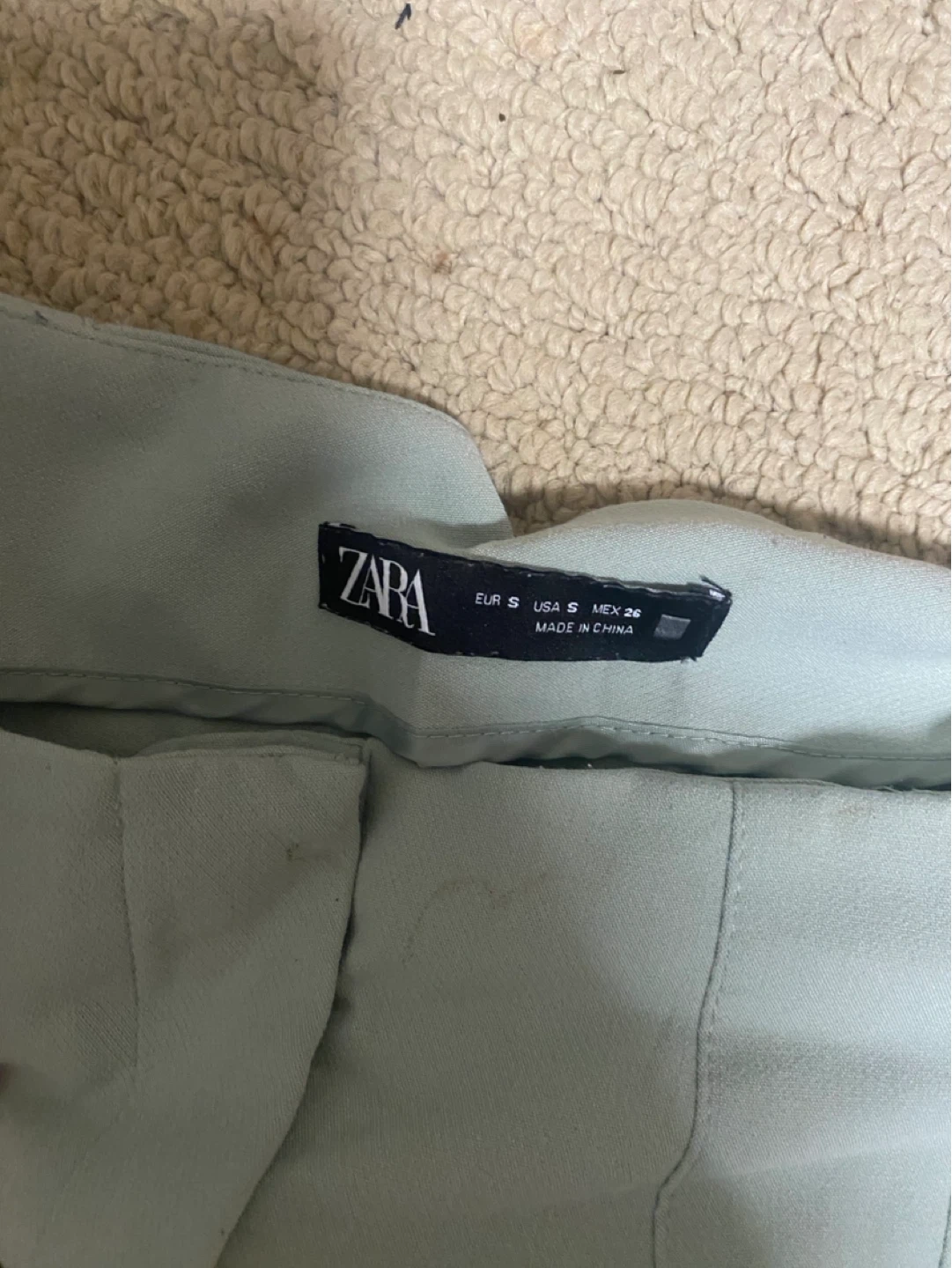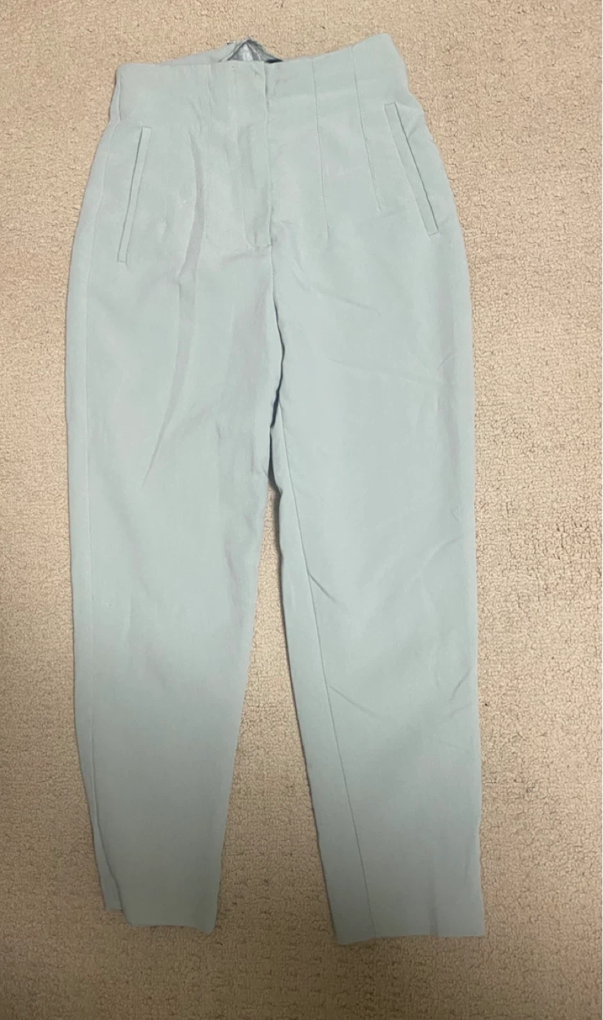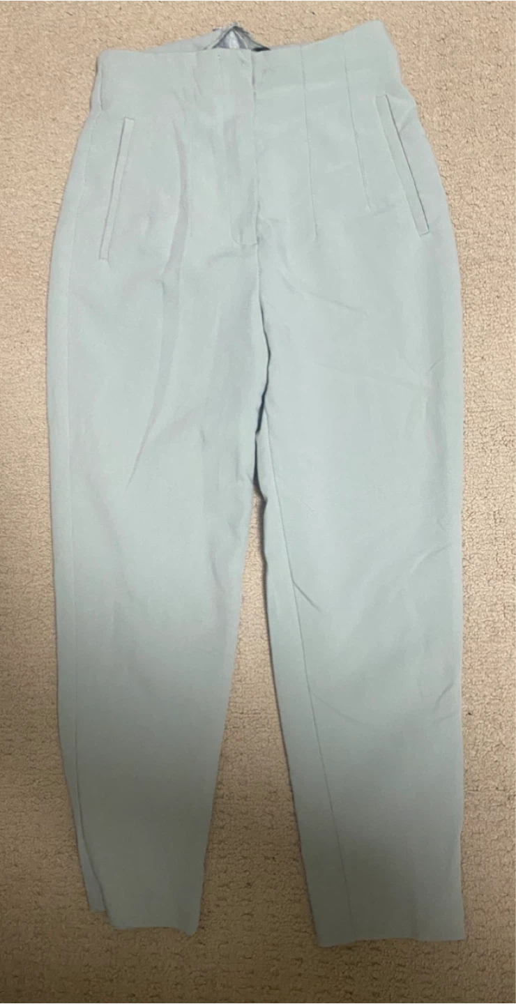 174Selling a pair of light blue Zara pants in size small. There are a few small marks, as shown in the photos, but otherwise in good condition. Not noticeable when wearing.