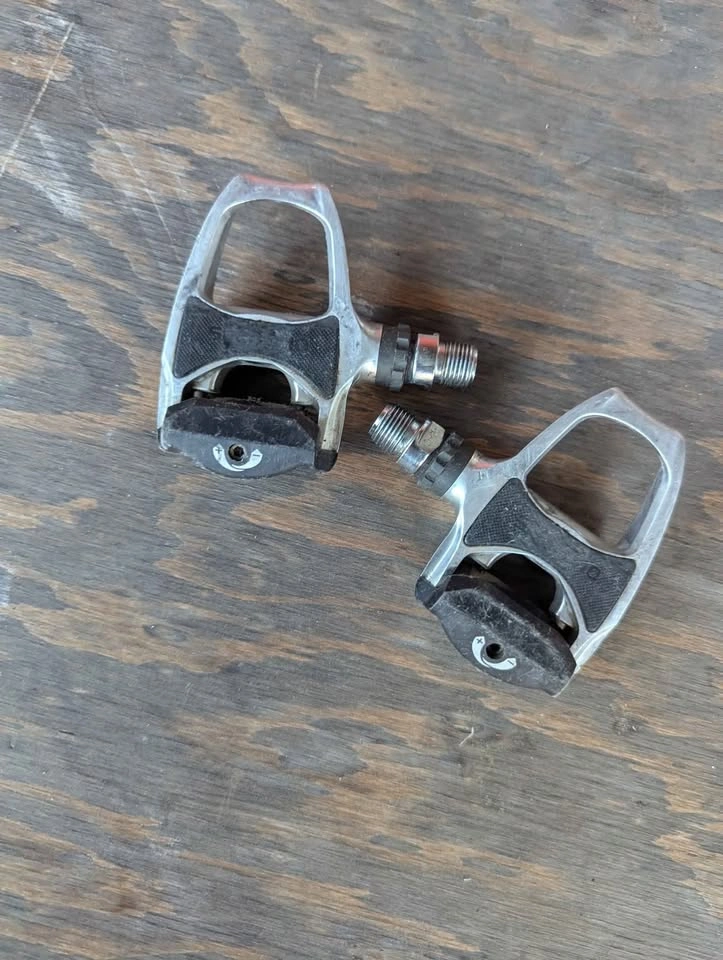 The Shimano PD-R600 was a road clipless pedal, often described as an Ultegra-level equivalent to the high-end Dura-Ace 7750 pedal, offering a similar wide, low-profile platform for stability and comfort. It featured an SPD-SL cleat-compatible design with adjustable tension and an easy clip-in action due to the pedals slanting upwards for entry. These pedals were known for their functionality and a slight weight advantage over their Dura-Ace counterparts, though installation required an 8mm Allen key rather than traditional wrench flats. Key Features SPD-SL System: Uses the same cleats as the Dura-Ace pedals, providing consistent performance. Wide Platform: Offers great stability and comfort for the foot. Low-Profile Design: Contributes to a sleek look and easy entry. Adjustable Tension: Allows riders to customize the effort needed to release from the pedal. Easy Entry: The pedal body is designed to slant upward, making it easier to insert the cleat. Material: Constructed with a blend of aluminum, steel, and alloy, the PD-R600 is a durable pedal with a solid build quality. The PD-R600 was designed as an accessible, high-performing pedal for road cyclists. It offered the performance benefits of the premium Dura-Ace models at a more affordable price point, making it a great option for serious cyclists.