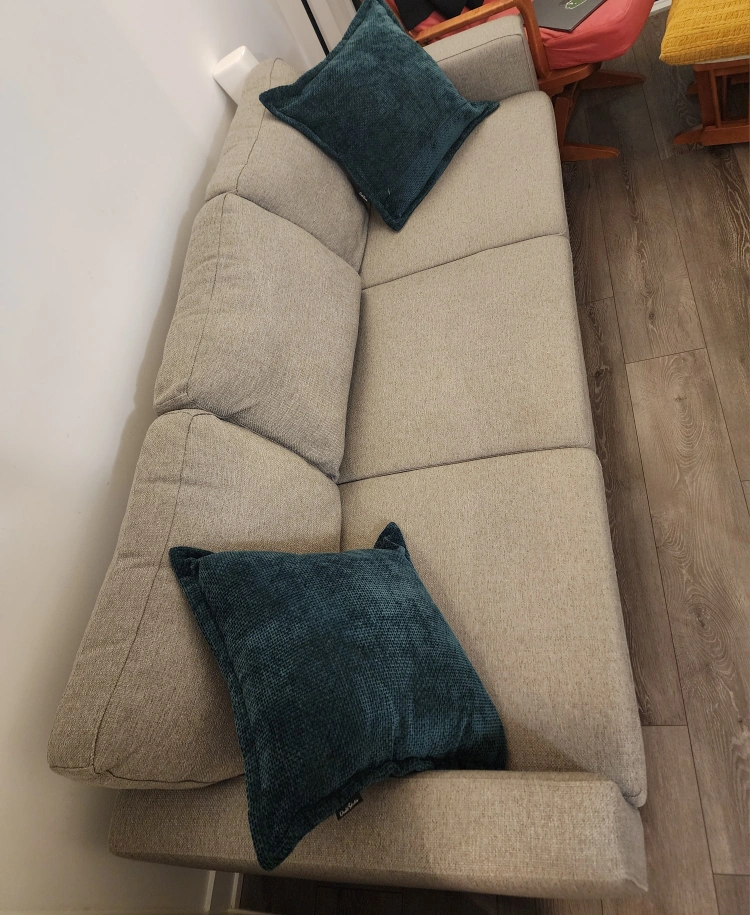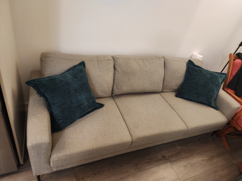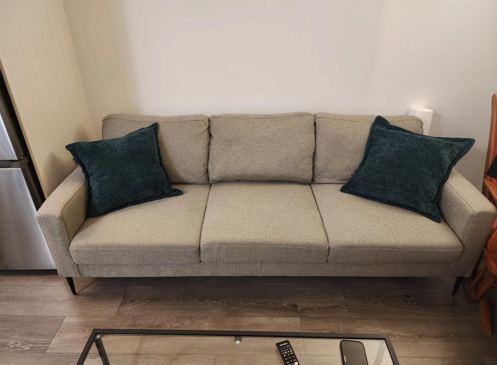 150SMOKE FREE PET FREE HOUSE. back cotions are removable, u can use it even as a bed originally bought it for 1100 come see it if it wasn't perfect condition say no to it. i can also deliver it on Oct 25th if u come and see and make a small deposit. Selling a gently used Article Sven sofa in Briar Grey. It's a stylish and comfortable three-seater that would look great in any living room. The sofa is in perfect condition and has a classic, modern design. The material is durable and easy to clean. Perfect for relaxing or entertaining guests! also in smoke free and pet free house, not a single stain on it, and used it for less than 3 month, selling only because moving to a smaller place. Teresa can be distinguished by its sophisticated fabric resembling tweed, its simple shape and its iron legs. A true modern and timeless gem. This 3-seater sofa will blend effortlessly in any décor. Let’s not forget its plump seat cushions and low profile that exude comfort. Sink into plush seating with generous cushioning that offers a perfect balance of softness and support for everyday lounging. Its clean lines, contemporary silhouette, and neutral upholstery make it a versatile piece for modern living. Effortlessly enhances your living space, creating a warm and inviting atmosphere that blends with multiple décor styles. Built with a durable frame and high-quality upholstery for long-lasting comfort and style.
