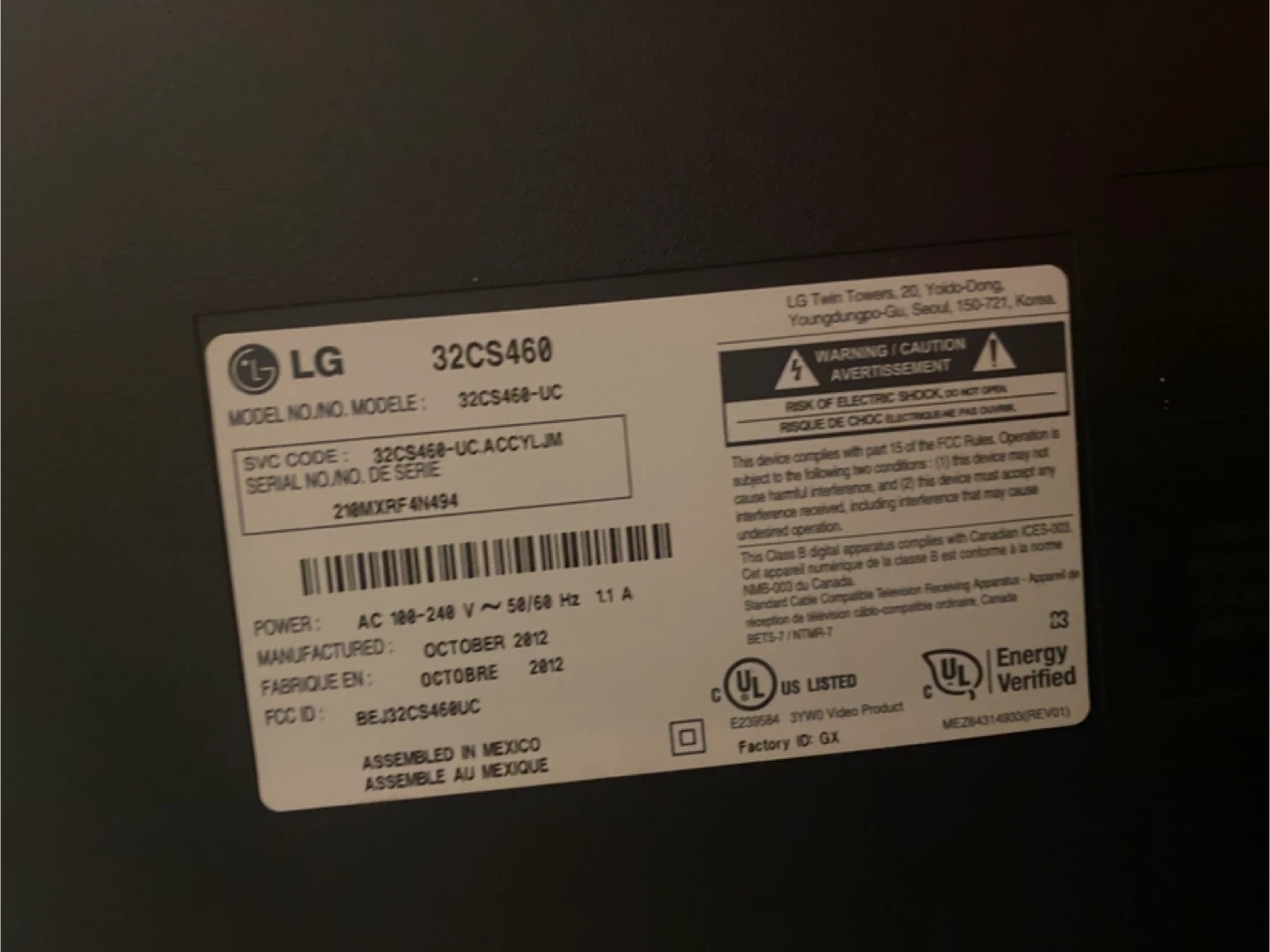 206Selling an LG 32CS460 television. It's a 32-inch model, perfect for a smaller space or as a secondary screen. The TV is in used condition and ready for a new home!