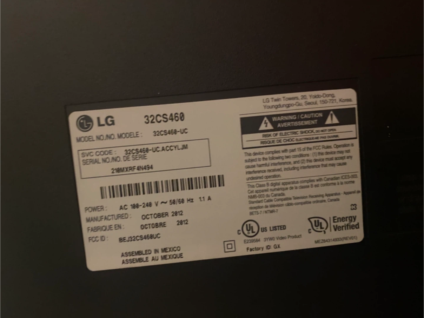 Selling an LG 32CS460 television. It's a 32-inch model, perfect for a smaller space or as a secondary screen. The TV is in used condition and ready for a new home!