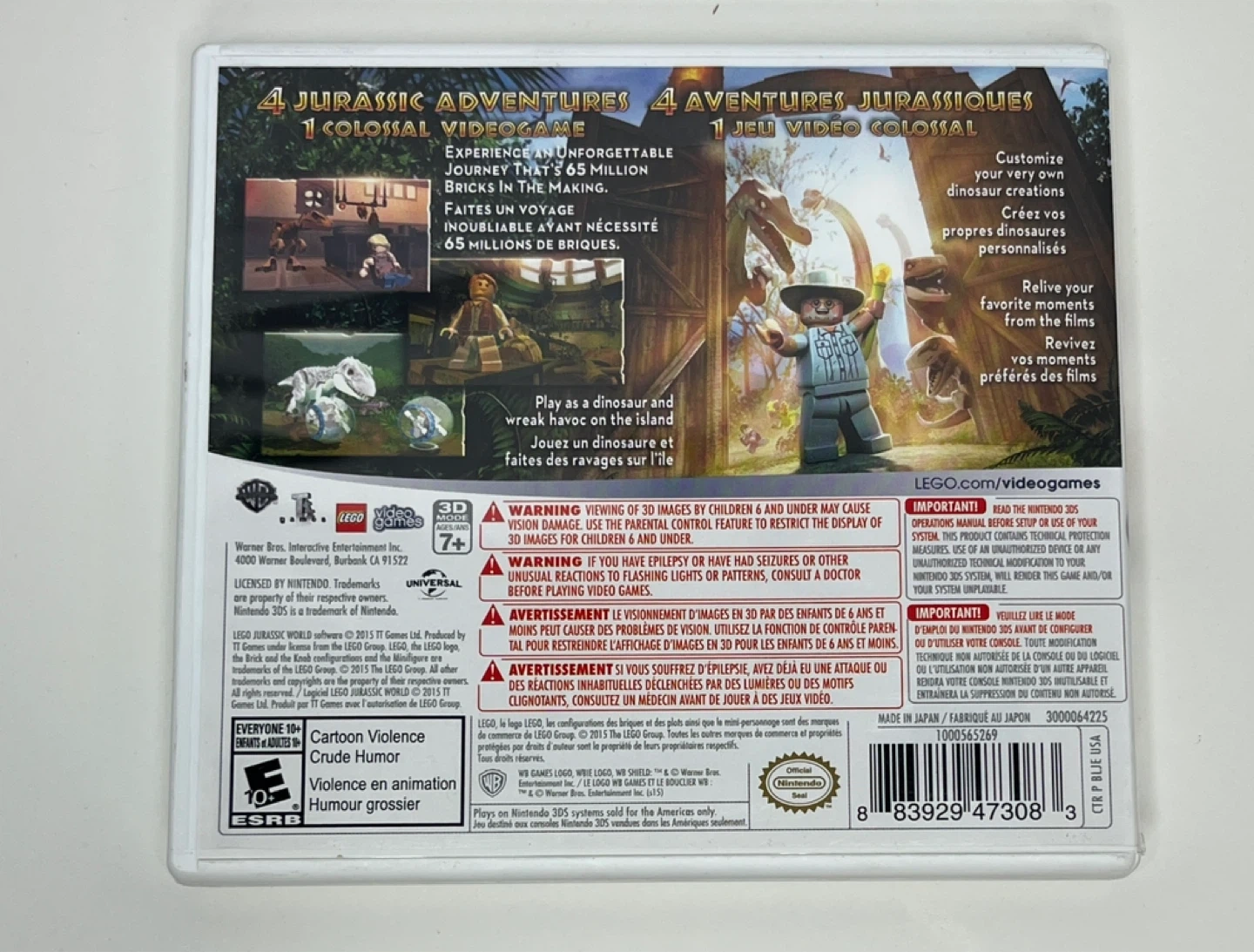 Selling LEGO Jurassic World for the Nintendo 3DS! It's rated E for Everyone 10+ and features 4 Jurassic adventures. Play as a dinosaur and wreak havoc on the island!