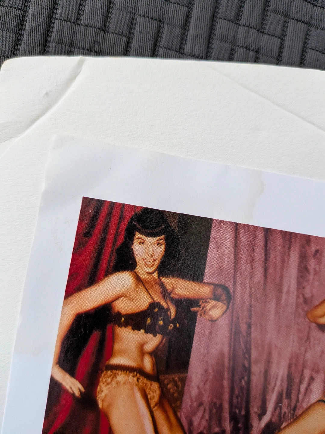 157Up for grabs: Print of Vintage Betty Page poster about 9 x 5 inches. Back has additional pics on back Foam board is a little cracked NOT original poster. Purchased in early 2000's at Vintage empherma show A couple of faint scratches Cash only, no etransfers Location: Etobicoke. Rathburn Rd and Renforth dr. Etobicoke Olympium nearby. I cannot meet anywhere else but this location