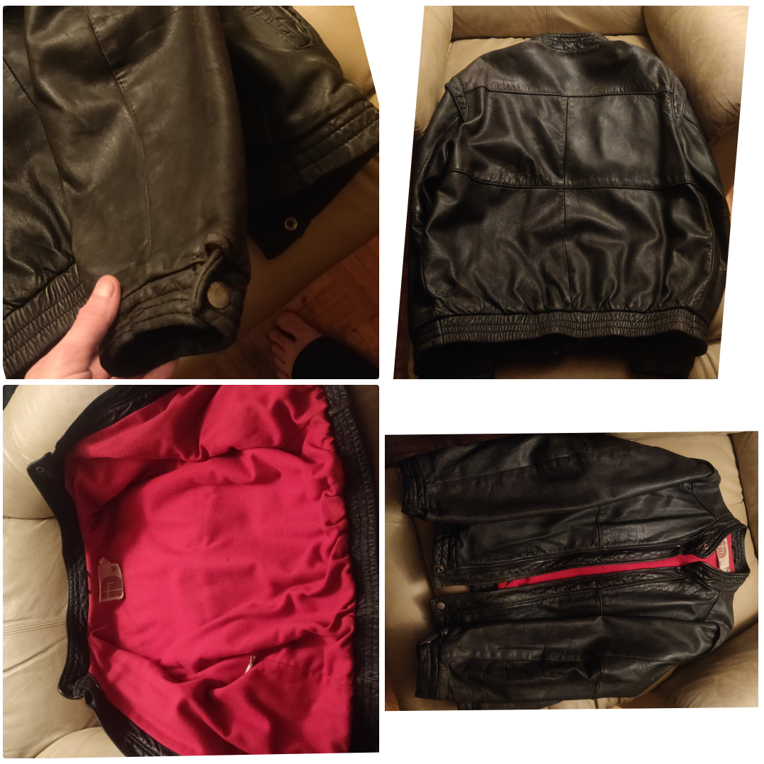 Selling a stylish leather jacket from the 80s! Brand : Rice, Made in Canada! It's black on the outside with a vibrant red lining. It's in good condition and ready for a new home!