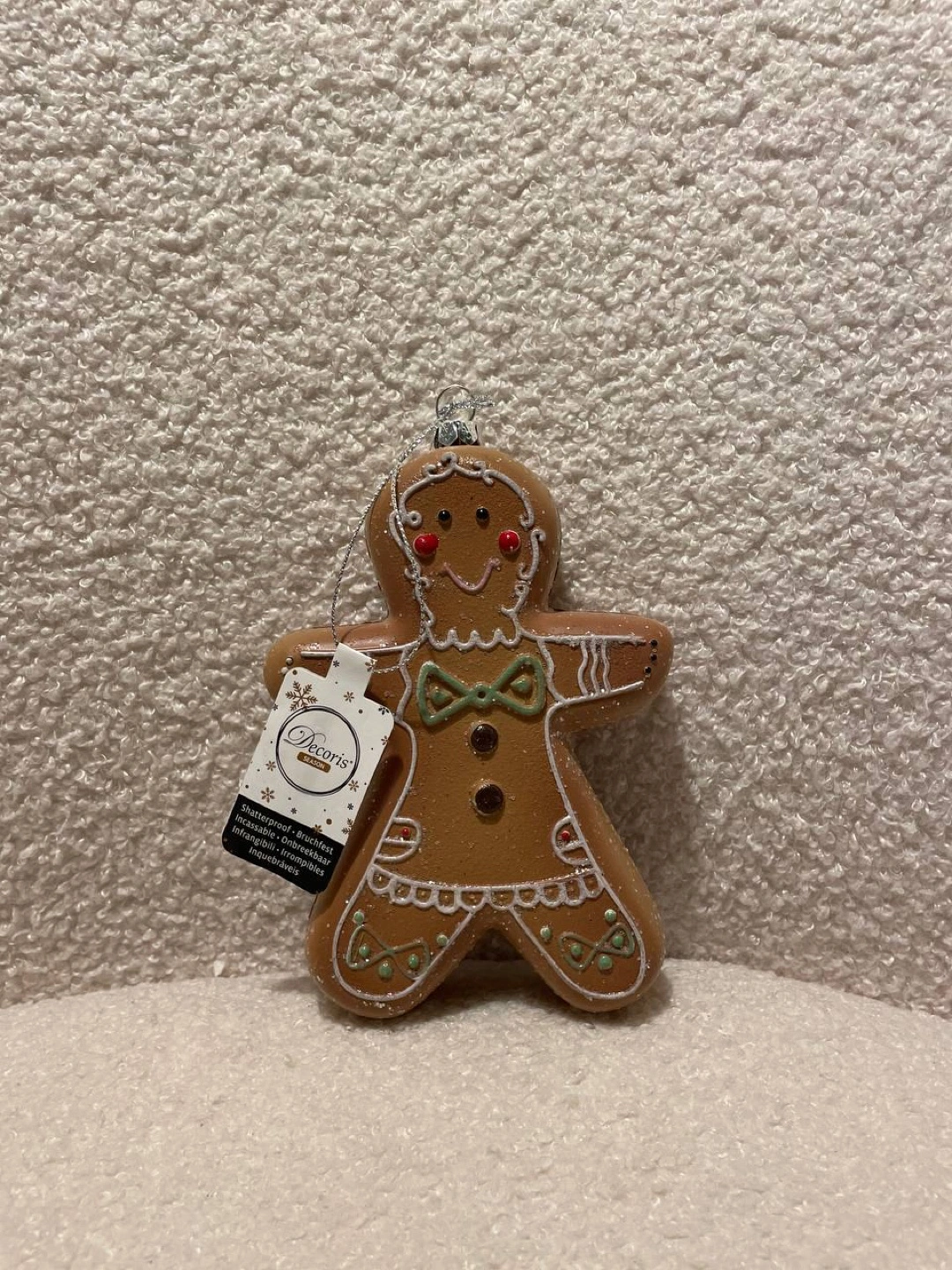 Add a touch of holiday cheer to your home with this adorable Decoris gingerbread man ornament! It's shatterproof, so you don't have to worry about it breaking easily. Perfect for decorating your Christmas tree or adding a festive touch to any room