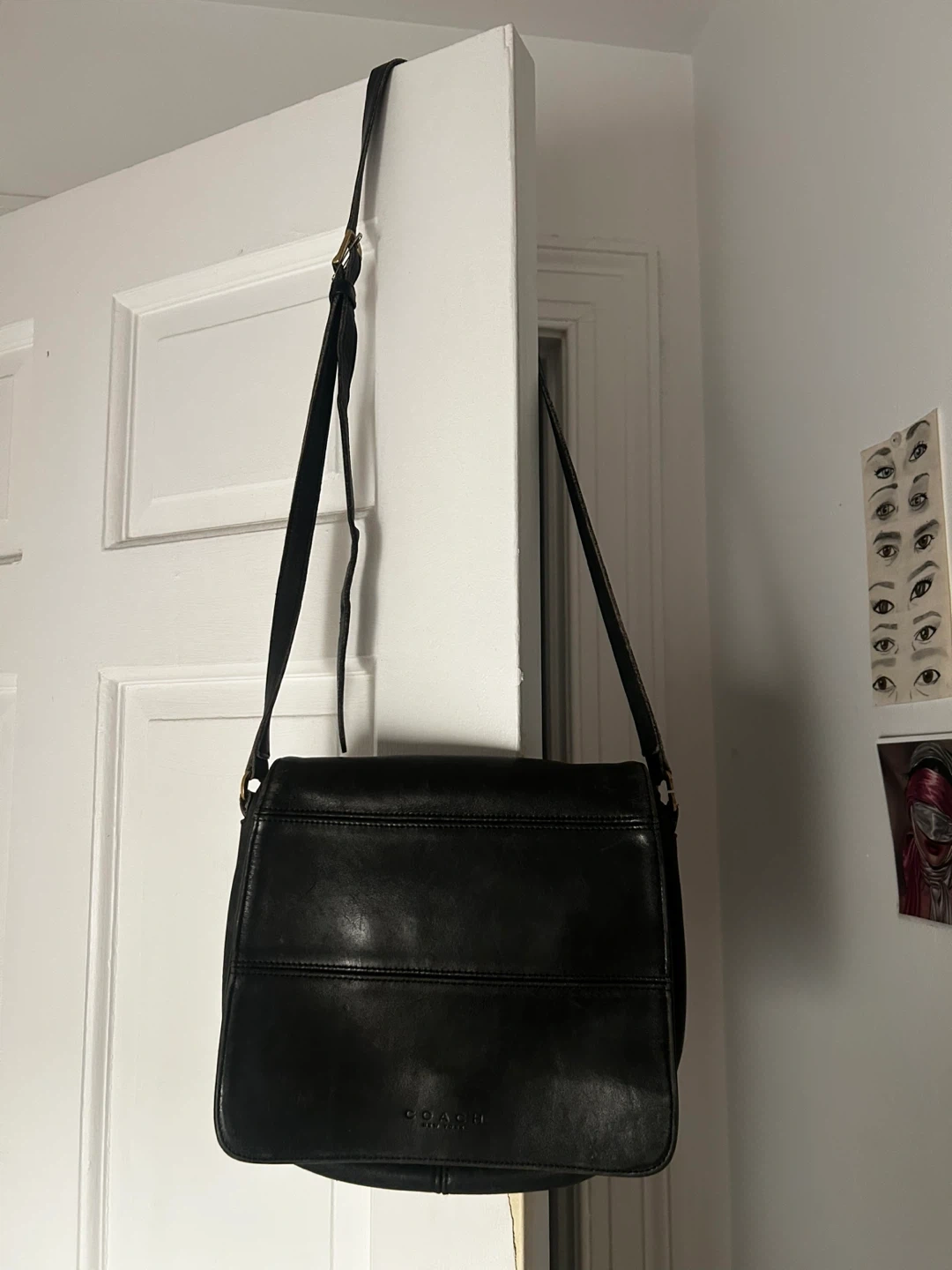 Vintage Coach purse. The leather is soft, subtle, and broken in. A timeless classic. Functions perfectly with adjustable strap and zipper within.