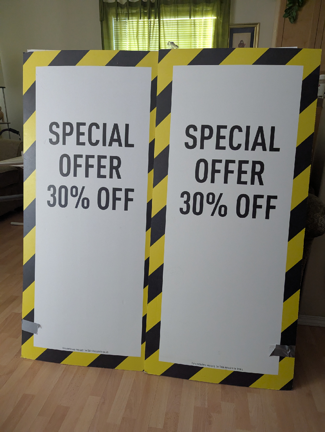 A bunch of FOAM CORE SIGNS with different wording. Approx 23.5”x51" $4ea or make offer for all