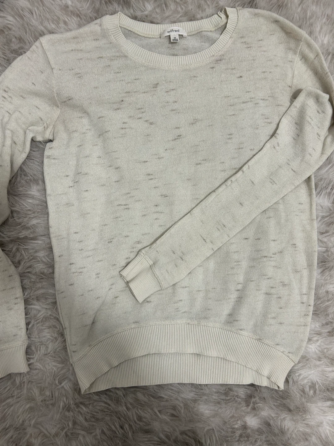 Selling a Aritzia Wilfred sweater in size XS. It's a light, neutral beige.The sweater is in good condition and ready for a new home!