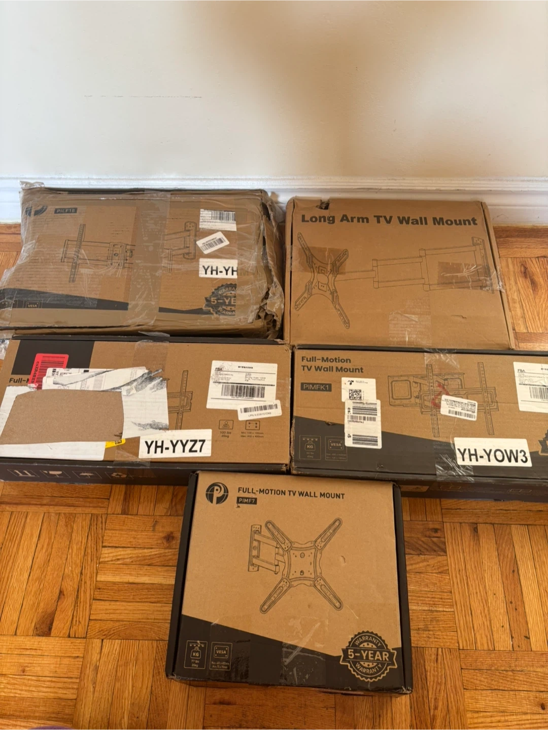 Selling a variety of full-motion TV wall mounts. These are perfect for getting your TV up on the wall and saving space! Available models include PILF16, PIMF7, and PIMFK1. All come in their original boxes